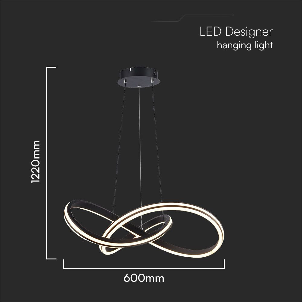Designer függeszték, 40w, CCT, 4800lm, 270°, fekete, CRI>80, V-TAC, 23373