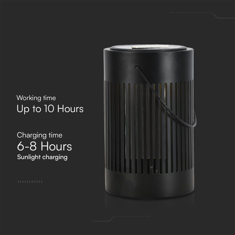 Világítsd meg kültéri tereidet a VT-7994 napelemes LED asztali lámpával. Elegáns, fekete fém testtel és fogantyúval ellátott, dizájnos kerti lámpa, amely tökéletes teraszod, kerted vagy erkélyed dísze. Meleg fehér, 3000 K-es fényével és 10,5 lumenes (21 hasznos lumen) fényerejével ez a lámpa hangulatos hangulatot teremt az esti összejövetelekhez. Tartós kialakításának és IP20-as besorolásának köszönhetően alkalmas fedett kültéri használatra. A 220 mm magas és 120 mm széles lámpa kompakt, mégis nagy teljesítményű, 180°-os sugárzási szöggel. Megbízható Lin-ion 18650 akkumulátorral (3,7 V, 1200 mAh) működik, amely 6-8 óra alatt feltölthető, és akár 10 óra munkaidőt biztosít. A VT-7994 energiahatékony és kényelmes kialakítású, így tökéletesen kiegészíti környezetbarát életmódodat. Világítsd meg kertedet stílusosan és fenntartható módon.