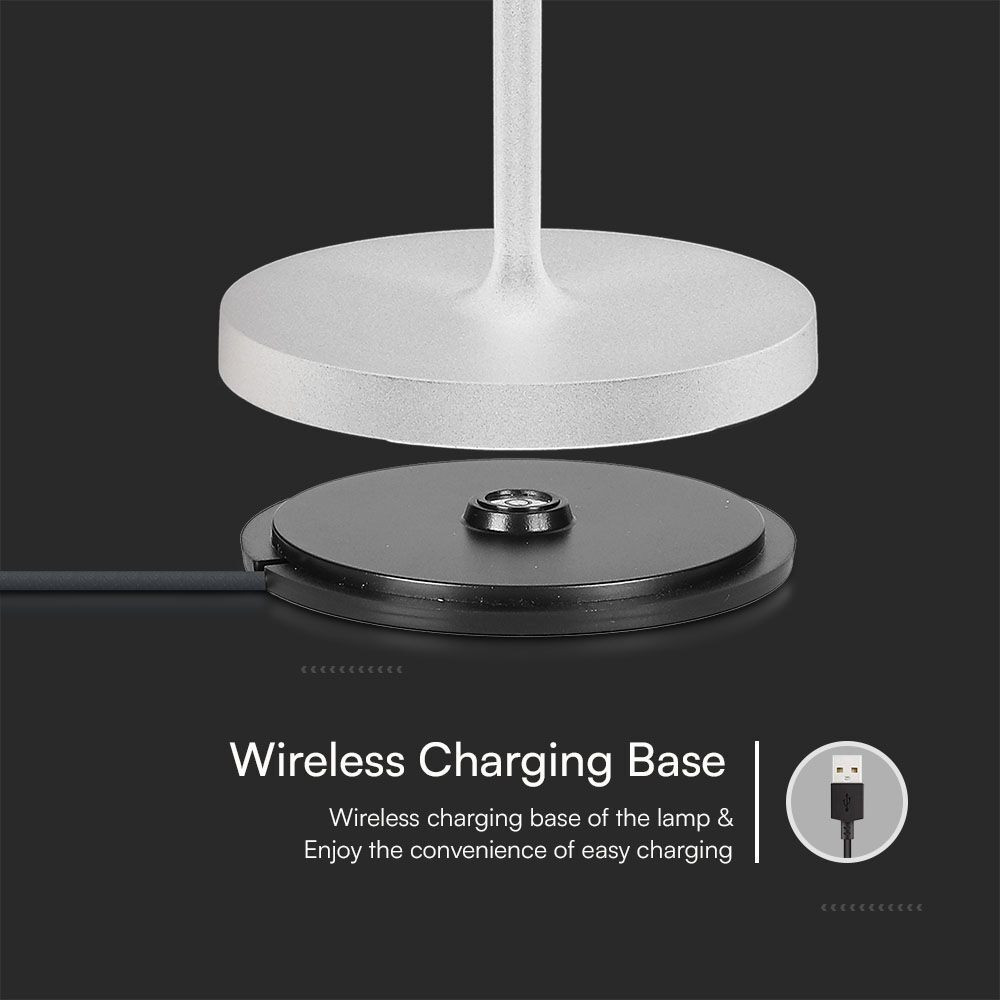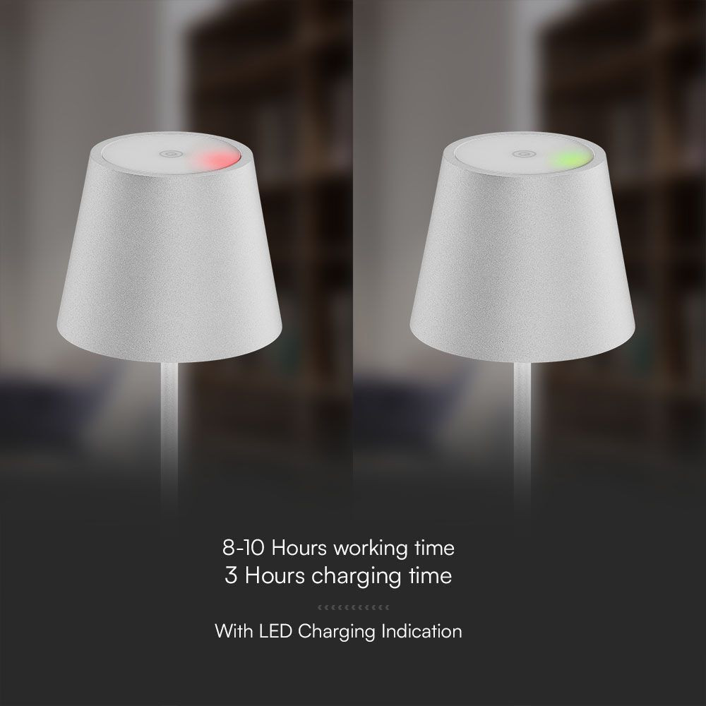 Újratölthető asztali lámpa, 1,5w, 3000K, meleg fehér, 150lm, 180°, fehér, dimmelhető, IP54, V-TAC, 23445