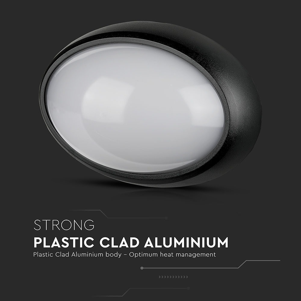 Kültéri LED mennyezeti lámpa Ovális, 12w, 3000K, meleg fehér, 840lm, 120°, fekete, CRI>70, IP54, V-TAC, 1350