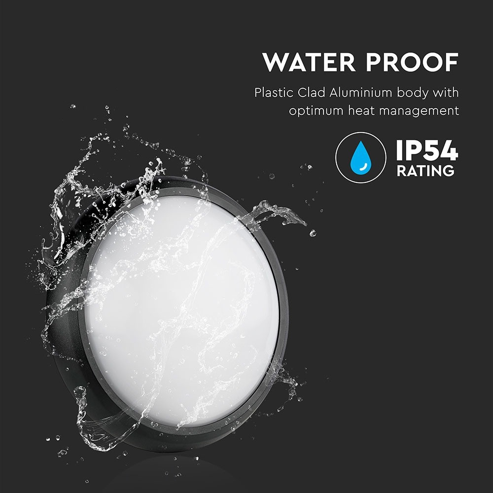 VT-8014 8W-Os, Kerek, IP54-Es, Kupolás Lámpák, 6400K, Fekete Testtel
