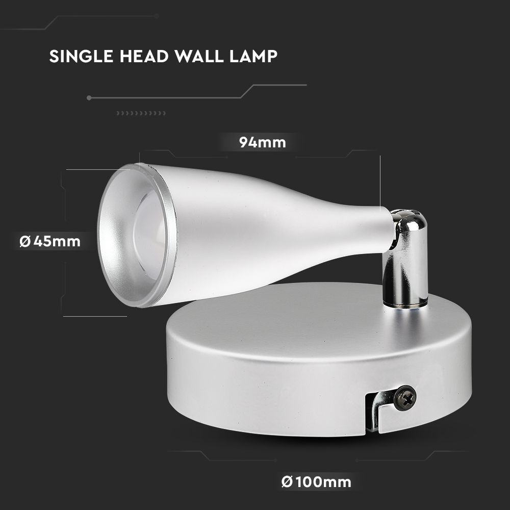 LED fali spot lámpa, 4,5w, 4000K, természetes fehér, 420lm, 100°, fehér, V-TAC, 218264