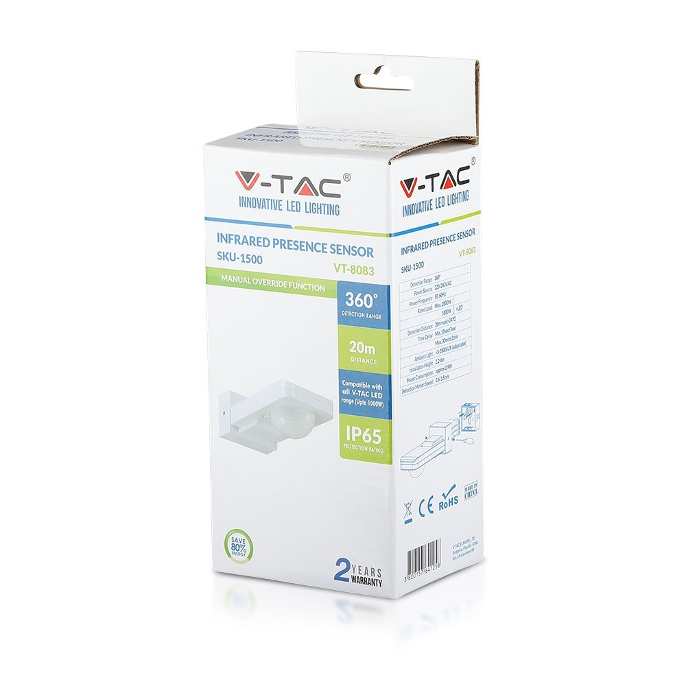 Infravörös mozgásérzékelő, fehér, IP65, V-TAC, 1500