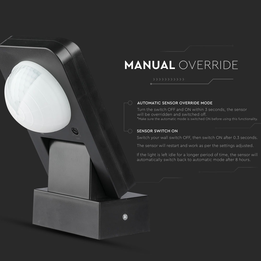 Infravörös mozgásérzékelő, fekete, IP65, V-TAC, 15011