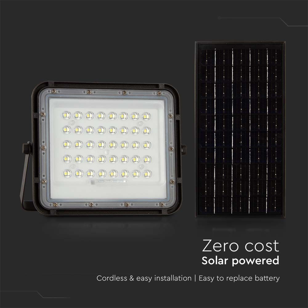 Napelemes LED reflektor távirányítóval, 6400K, hideg fehér, 800lm, 120°, fekete, IP65, V-TAC, 7823