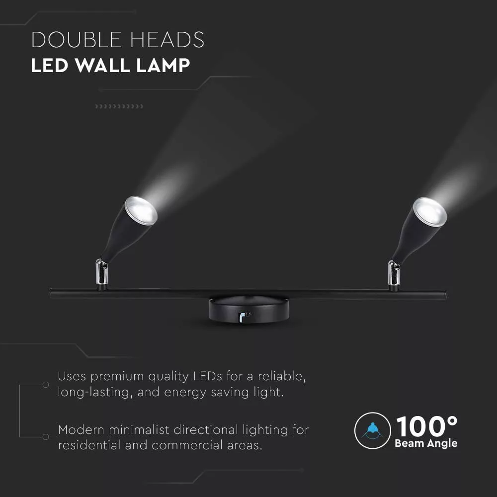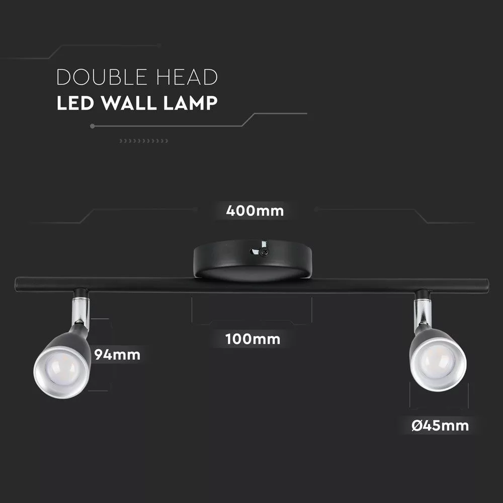 LED fali spot lámpa fej, 9w, 4000K, természetes fehér, 840lm, 100°, fekete, V-TAC, 218269