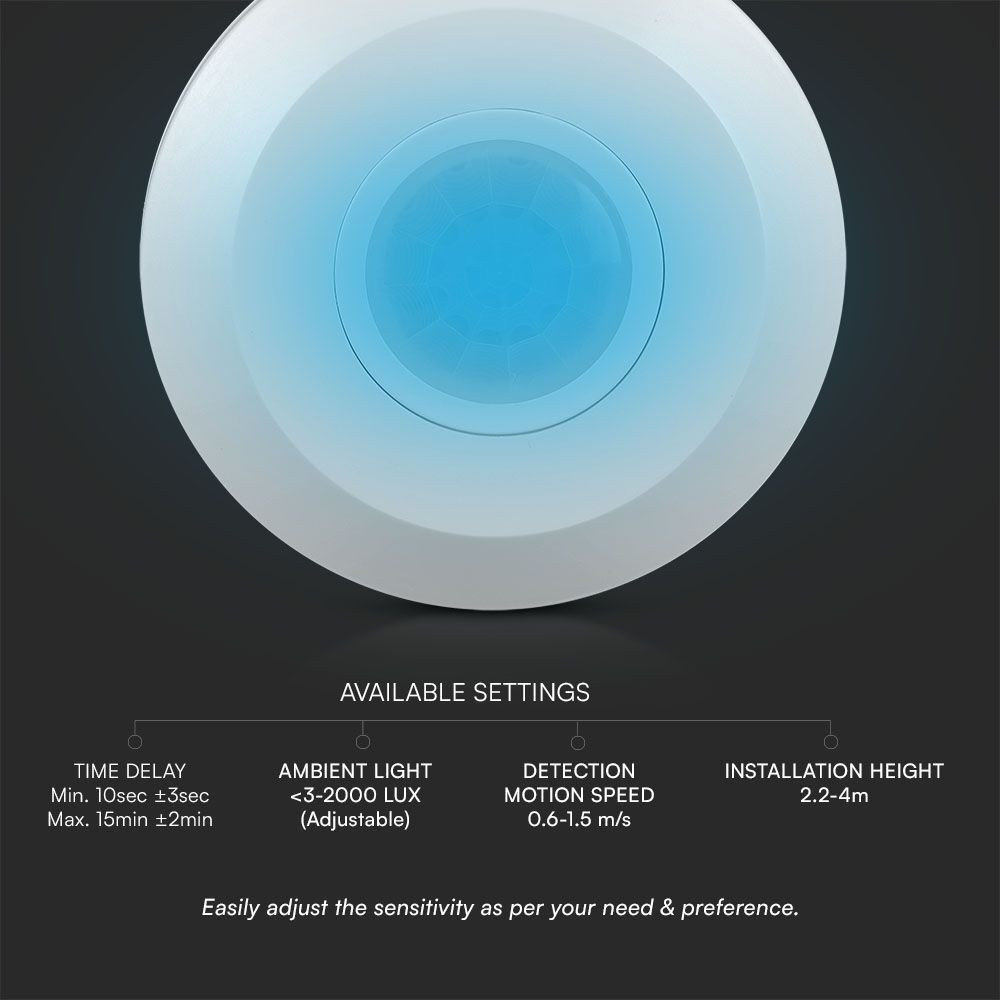 Bemutatkozik a VT-81011 PIR érzékelő, egy élvonalbeli mozgásérzékelési megoldás, amely átfogó 360°-os érzékelési tartománnyal rendelkezik. Úgy tervezték, hogy zökkenőmentesen illeszkedjen bármilyen környezetbe, elegáns fehér burkolata könnyedén illeszkedik a különféle dekorációs stílusokhoz. Ez az érzékelő hatékonyan működik hálózati adapterrel (220-240V, 50/60Hz), és IP20 besorolású, így megbízható teljesítményt biztosít beltéri környezetben. Akár 8 méteres érzékelési távolsággal és 0,6-1,5 m/s közötti mozgássebesség-érzékenységgel a VT-81011 gyors válaszidőt garantál a fokozott biztonság érdekében. A <3 és 2000 LUX között állítható környezeti fényérzékenység lehetővé teszi a testreszabást a fényviszonyok alapján, biztosítva az optimális működést éjjel-nappal. A VT-81011 tartós kialakításának, az 5 év garanciának és az energiatakarékos képességeknek köszönhetően nyugodt lehet. Felhasználóbarát telepítésének köszönhetően praktikus választás mind lakossági, mind kereskedelmi alkalmazásokhoz. Az optimális hatékonyság érdekében ez az érzékelő könnyen integrálható különféle rendszerekbe, így nélkülözhetetlen elemévé válik biztonsági eszközeinek.