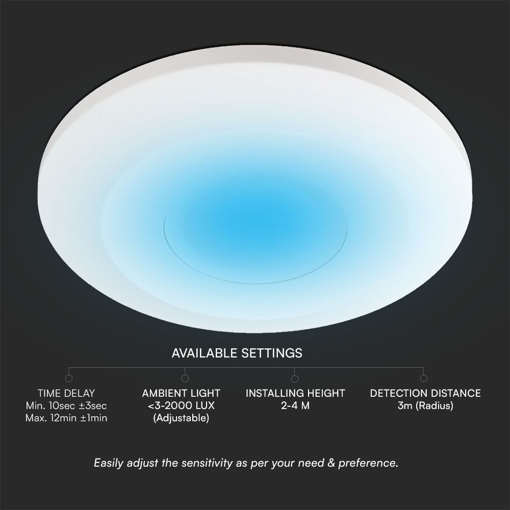 Bemutatkozik a VT-81014 valós jelenlét-érzékelő, egy fejlett mozgásérzékelési megoldás, amelyet kivételes teljesítményre terveztek változatos környezetekben. Ez az infravörös érzékelő 3 méteres érzékelési sugarú körrel rendelkezik, és 360°-os tartományban hatékonyan működik, biztosítva a teljes lefedettséget. Elegáns fehér testével és kompakt méreteivel (120 mm hosszúság x 34 mm szélesség x 122 mm magasság) zökkenőmentesen integrálható bármilyen környezetbe. A tartósságra tervezett érzékelő IP20 besorolással és nagylelkű 5 év garanciával büszkélkedhet, így megbízható választás különféle alkalmazásokhoz. AC 110-240V, 50/60Hz tápellátással rendelkezik, hatékonyan működik minimális energiafogyasztással. A <3-2000 LUX környezeti fényérzékenység állítható, így javítja a funkcionalitását különböző fényviszonyok között. Az érzékelő tartós LED-chipet tartalmaz, és energiatakarékosan tervezték, a teljesítmény feláldozása nélkül. A telepítés sokoldalú, és különféle módszereket támogat az Ön igényeinek megfelelően. A minimum 10 másodperces és maximum 12 perces késleltetéssel testreszabható működést tesz lehetővé. Azok számára, akik megbízható, hatékony és elegáns megoldást keresnek a mozgásérzékelésre, a VT-81014 valós jelenlét-érzékelő teljesítményében és kialakításában tűnik ki.