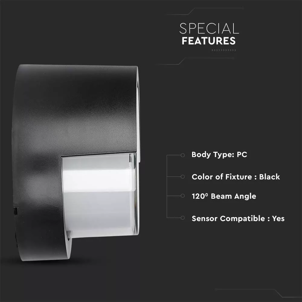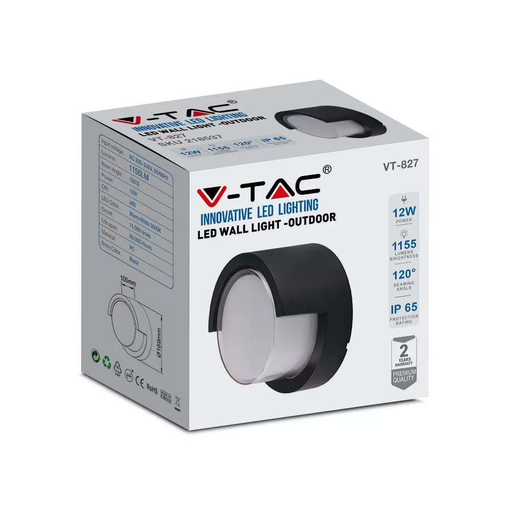 Kültéri LED fali lámpa, 12w, 3000K, meleg fehér, 1155lm, 120°, fekete, CRI>80, IP65, V-TAC, 218537