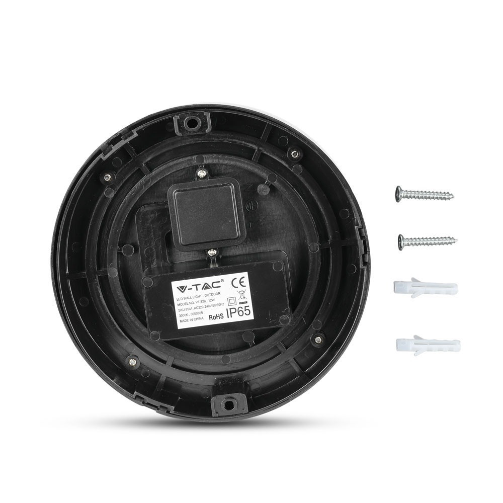 Kültéri LED fali lámpa, 12w, 3000K, meleg fehér, 900lm, 158°, fekete, CRI>80, IP65, V-TAC, 8541