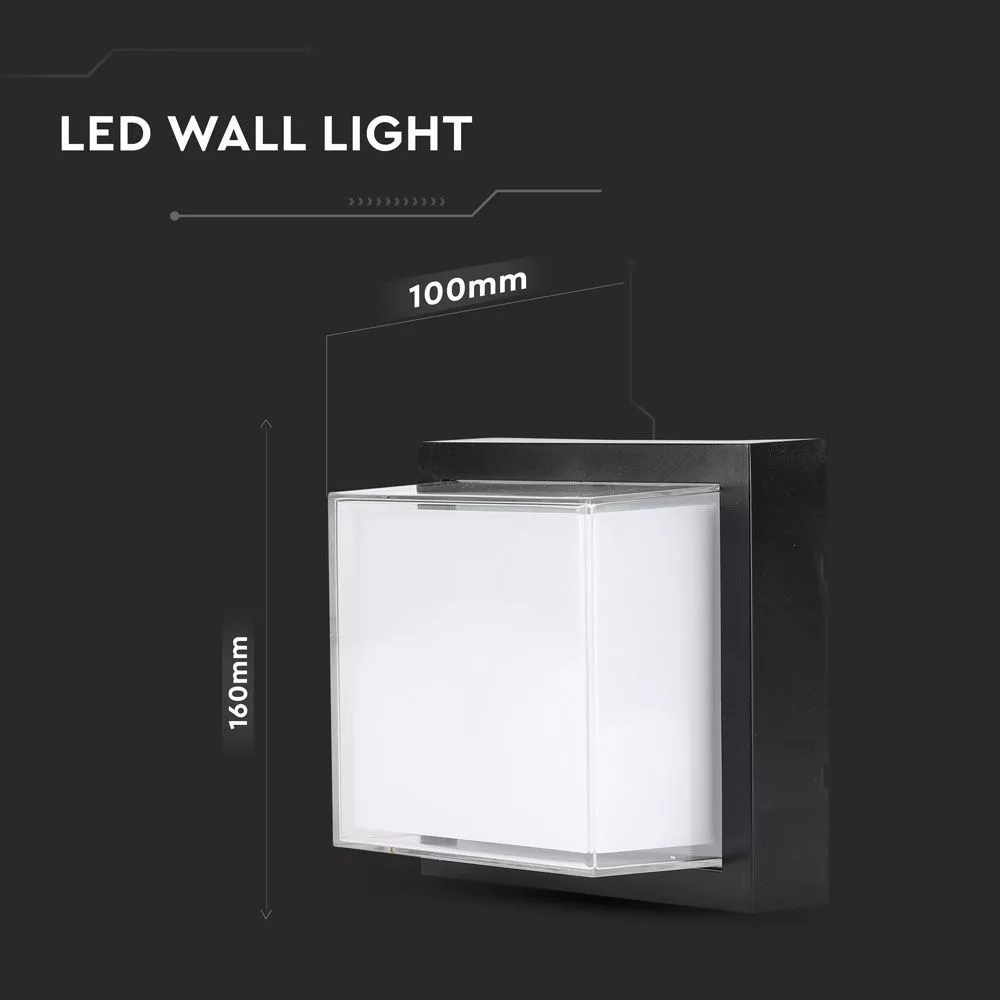 Kültéri LED fali lámpa, 12w, 3000K, meleg fehér, 1200lm, 150°, fekete, CRI>80, IP65, V-TAC, 218543