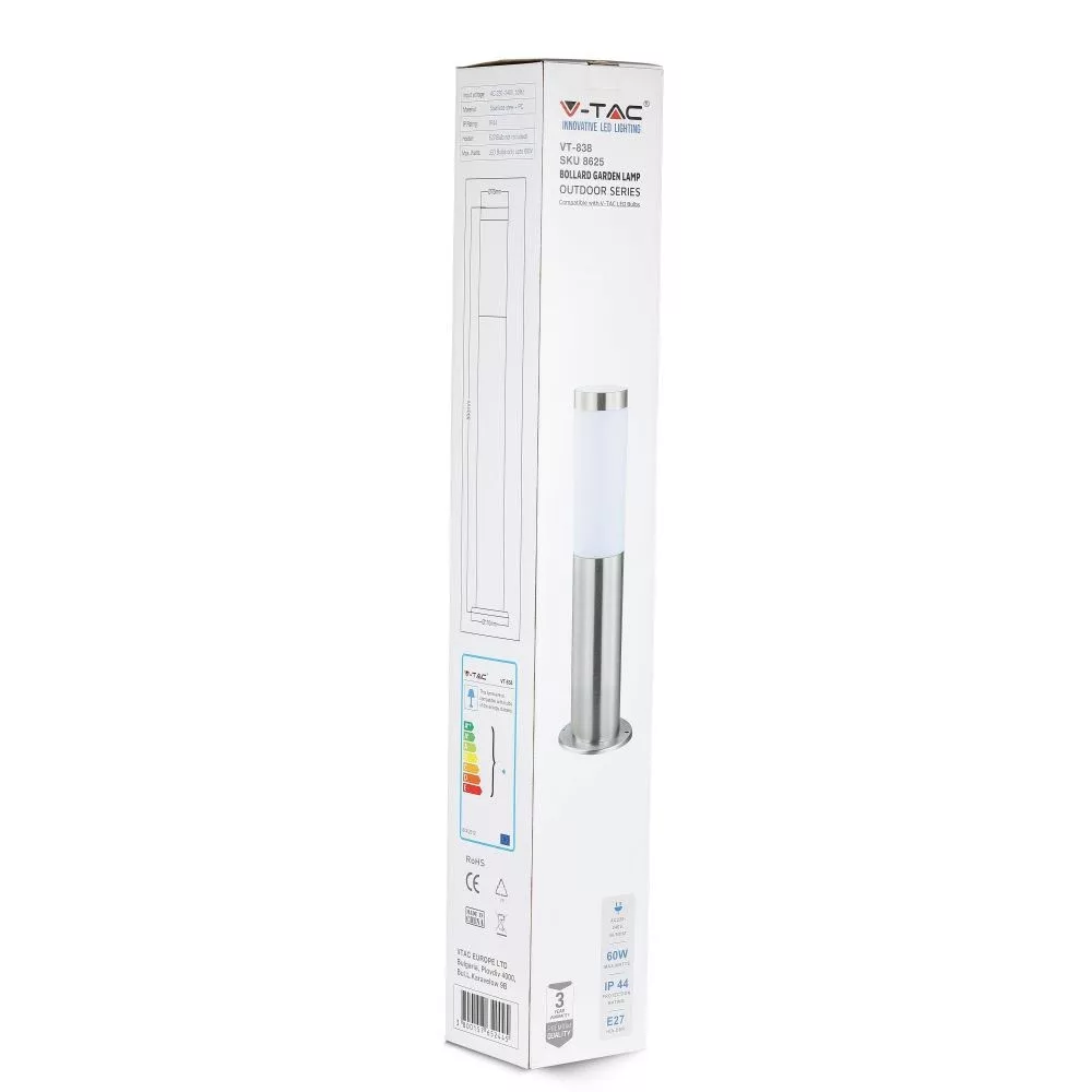 Kültéri állólámpa, E27, szatén nikkel, IP44, V-TAC, 8625