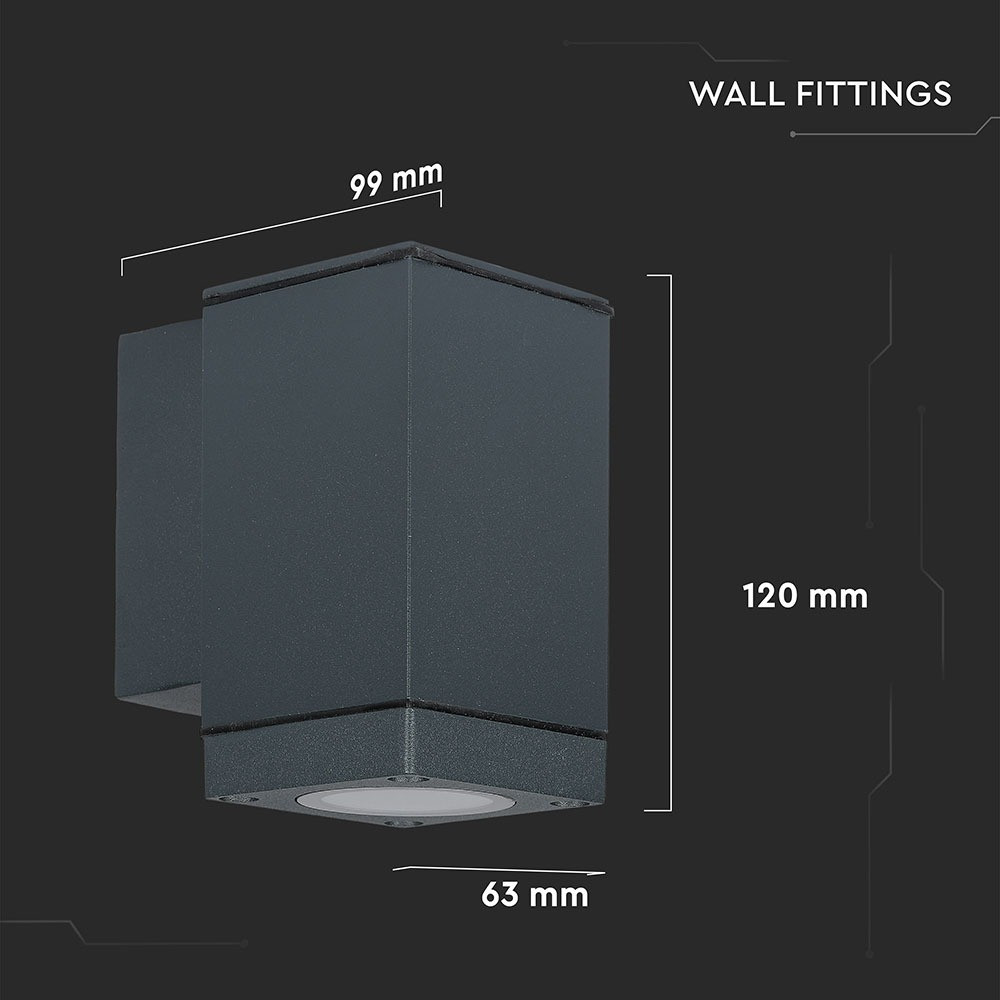 Kültéri fali lámpatest, GU10, sötétszürke, IP44, V-TAC, 8626