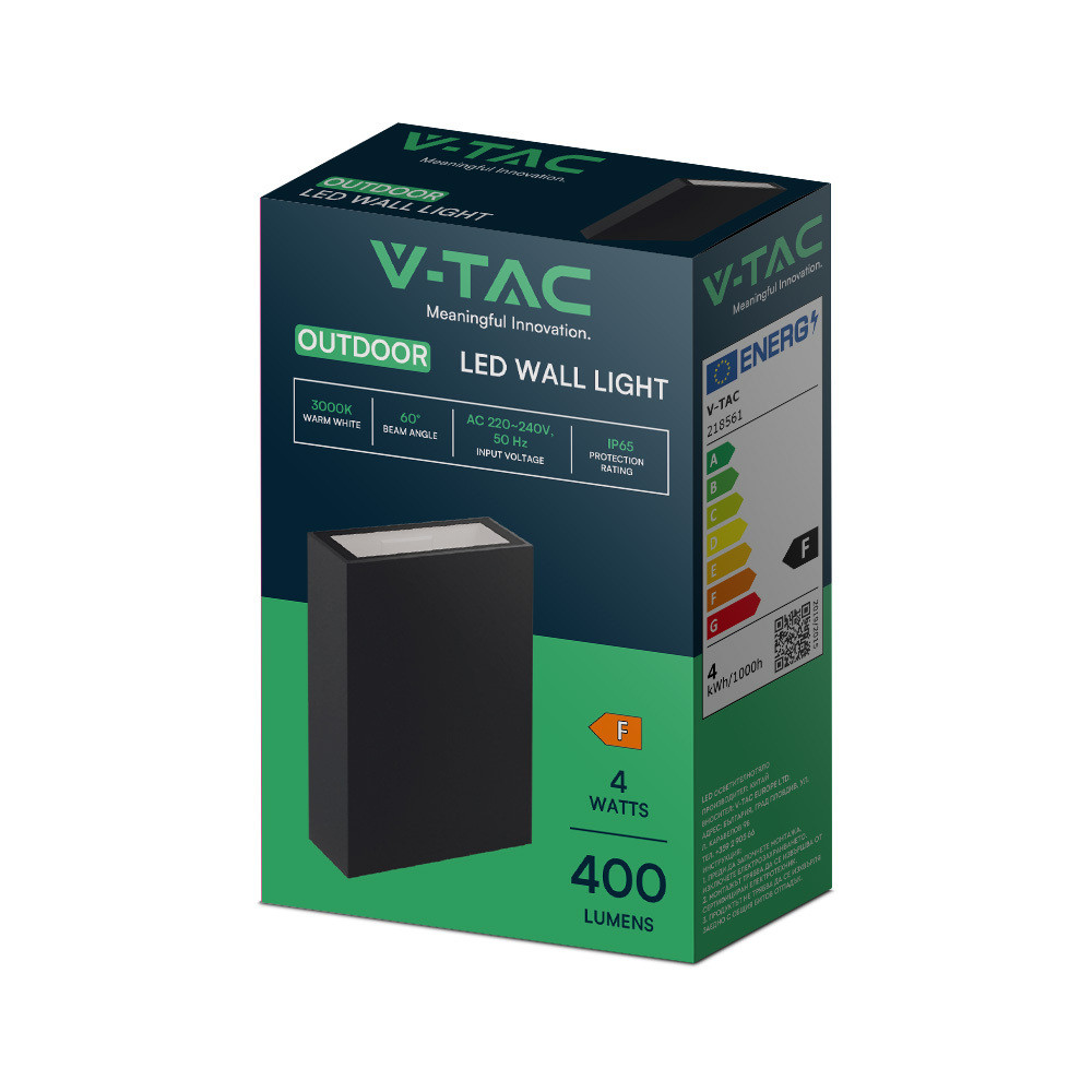 LED fali lámpa kétirányú téglalap CREE chip, 4w, 6400K, hideg fehér, 400lm, 60°, fekete, CRI>80, IP65, V-TAC, 218563