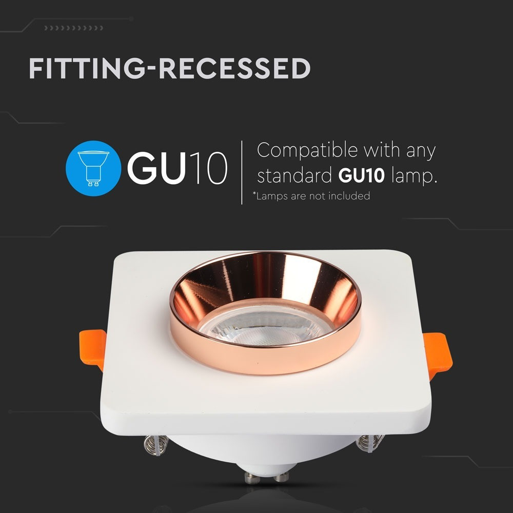 LED spotlámpa keret négyzet alakú, GU10, fehér, matt rózsaarany, V-TAC, 3117