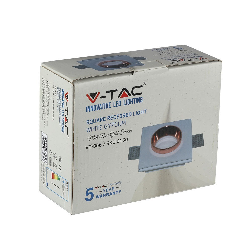 Világítsd meg otthonod a VT-866 GU10 süllyesztett LED-es spotlámpával. Modern esztétikával tervezett, négyzet alakú lámpatest, letisztult fehér gipszkarton testtel és elegáns matt rozéarany fém díszítőelemekkel. Tökéletesen illik a modern belső terekhez, zökkenőmentesen illeszkedik a mennyezetekbe, miközben hatékony világítást biztosít. A láthatóságot javító hasznos lumeneknek és a fókuszált megvilágításra optimalizált sugárzási szögnek köszönhetően ideális lakossági és kereskedelmi környezetben egyaránt. Ez a süllyesztett lámpatest kompatibilis a GU10 izzókkal, és könnyen telepíthető. IP20 besorolásának köszönhetően beltéri használatra is alkalmas. Élvezd a spotlámpa hosszú élettartamát és energiahatékonyságát, így tökéletes választás a környezettudatos fogyasztók számára. Méretek: 100 mm x 100 mm, vágási méret: 60 mm. Minden doboz 30 darabot tartalmaz, így kényelmes a nagy tételben történő vásárlás. Frissítsd világításodat a stílusos és funkcionális VT-866-tal.