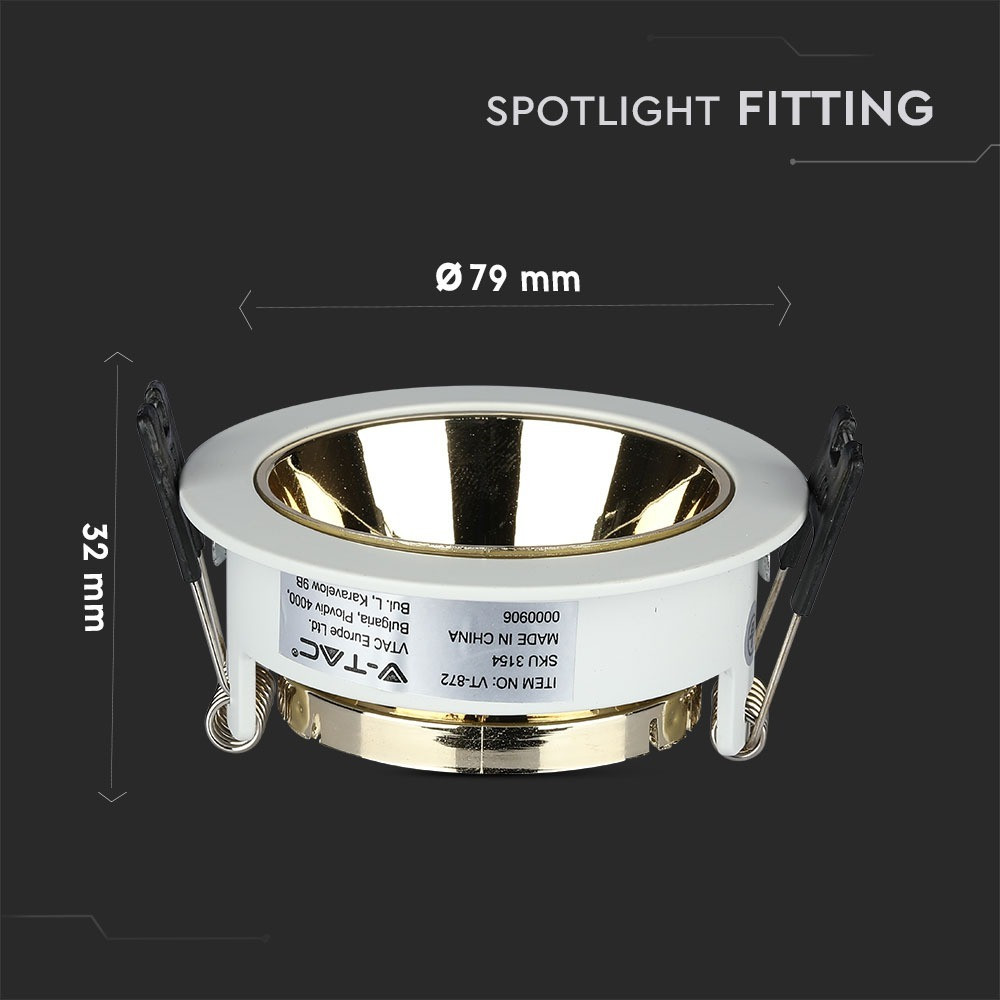 LED spotlámpa keret kerek, GU10, fehér, arany, V-TAC, 3154