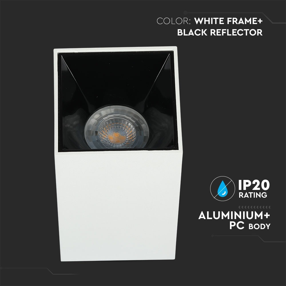 LED négyzet alakú mennyezeti lámpatest, GU10, fehér, fekete, V-TAC, 8584