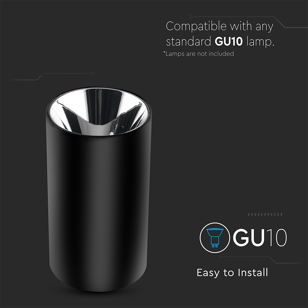LED kerek mennyezeti lámpatest, GU10, fekete, króm, V-TAC, 8998