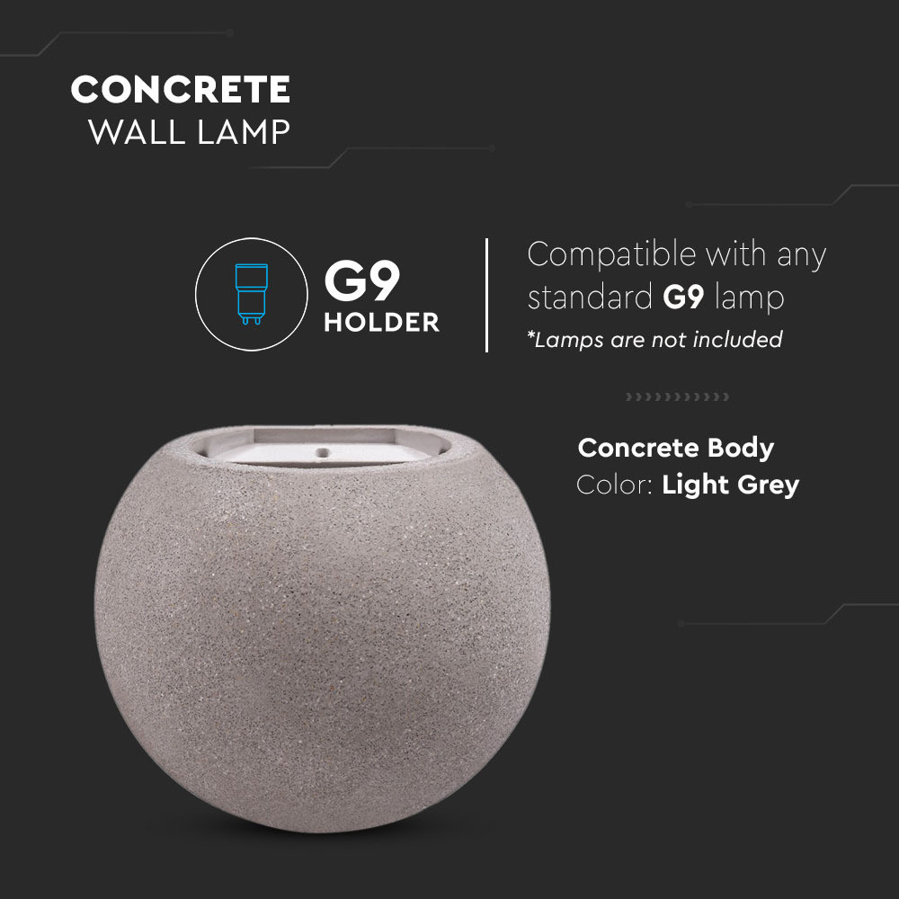 VT-891 LED Beton Fali Lámpa, Kerek - Világos Szürke G9 IP20