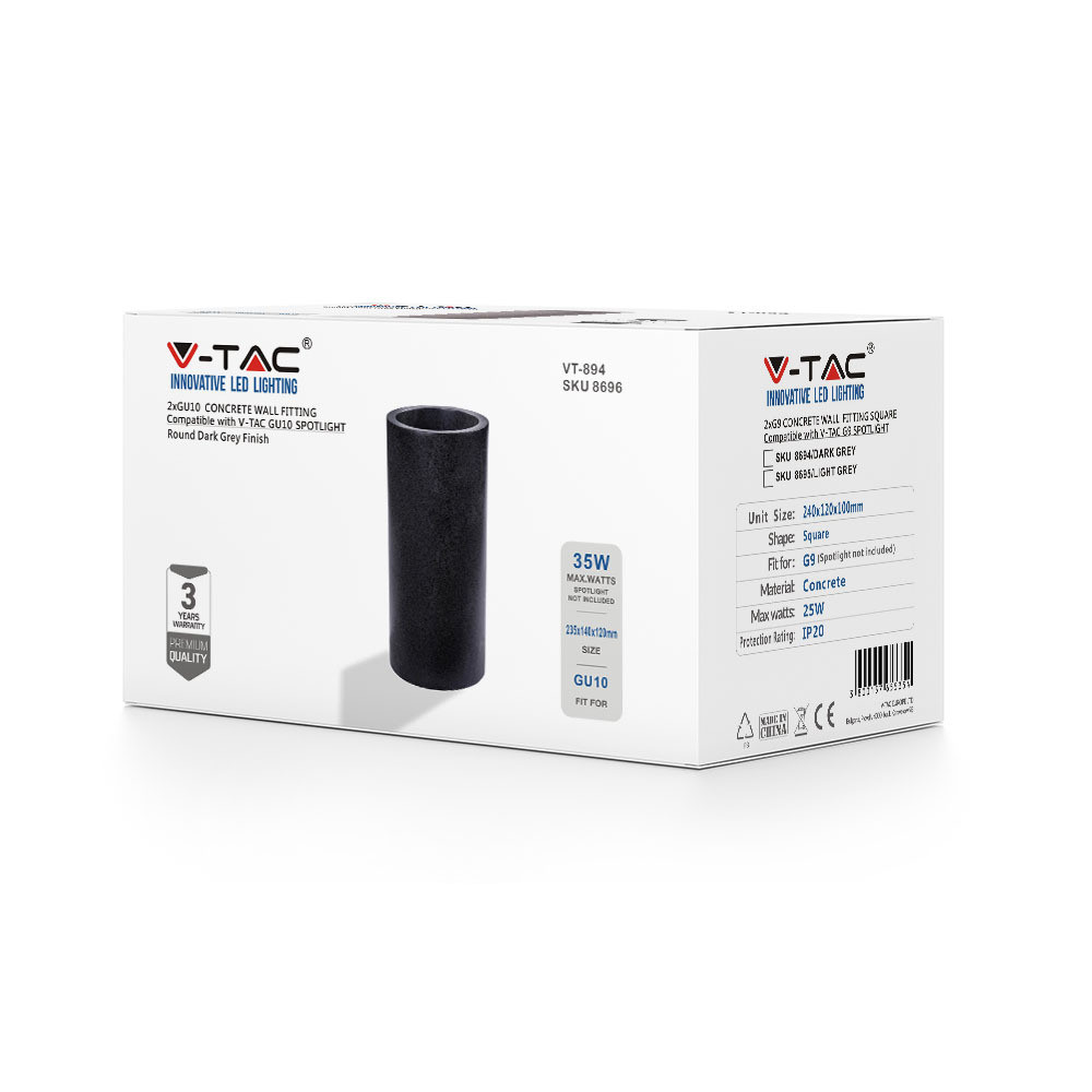 Világítsa meg tereit a VT-894 LED betonfali lámpával, melynek letisztult, sötétszürke felülete bármilyen modern dekorációhoz illik. Ez a stílusos, kerek lámpa GU10-es izzóval rendelkezik, amely akár 35 watt/méter teljesítményt is lead. Felületi szereléshez tervezték, IP20-as védelemmel rendelkezik, így ideális beltéri használatra. Lenyűgöző sugárzási szögével és több éves élettartamával a VT-894 egyszerre funkcionális és energiatakarékos. Beton váza nemcsak tartósságot biztosít, hanem egyedi esztétikai megjelenést is kölcsönöz. Méretek: 120 mm szélesség, 140 mm hosszúság és 235 mm magasság, így különféle fali alkalmazásokhoz alkalmas. Ráadásul a 3 év garanciának köszönhetően nyugodt lehet. Alakítsa át környezetét a dizájn és a praktikum tökéletes egyensúlyával.