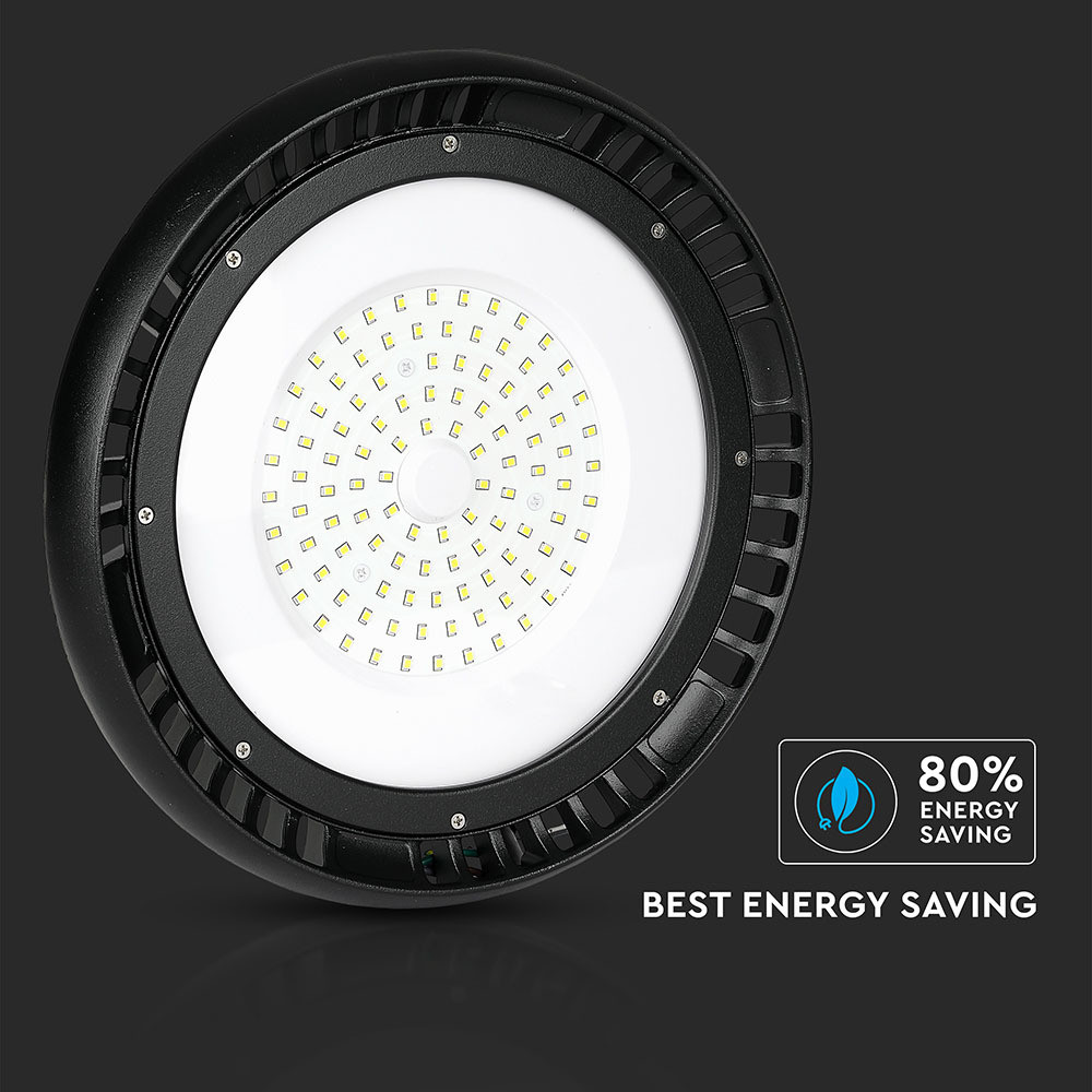 Bemutatkozik a VT-9-101 100W-os Highbay lámpa, egy csúcskategóriás világítási megoldás, amelyet a hatékonyság és a teljesítmény jegyében terveztek. A Meanwell meghajtóval és a Samsung chippel felszerelt lámpatest lenyűgöző, 12000 lumen fényerőt biztosít 120 lumen/watt értékkel, ragyogó, 6400K-es fehér fénnyel világítva meg a tereket. Az UFO sorozat kialakítása elegáns, fröccsöntött alumínium házzal rendelkezik, amely tartósságot biztosít, miközben hosszú, 50 000 órás élettartammal büszkélkedhet. Ideális különféle ipari és kereskedelmi környezetbe, a lámpa energiatakarékos, E (2021) besorolású, és akár 85%-os energiamegtakarítást is biztosít. A 120°-os széles sugárzási szöggel és IP65-ös védelemmel a VT-9-101 beltéri és kültéri környezetbe egyaránt alkalmas. A telepítés egyszerű, a szabályozható fényerő (1-10V) pedig lehetővé teszi a személyre szabott világítási megoldások kidolgozását az adott igények kielégítésére. A lámpa hatékonyan működik széles AC bemeneti feszültségtartományban: 95-265V, 50/60Hz, és úgy tervezték, hogy több mint 25 000 be-/kikapcsolási ciklust bírjon ki. Minden egységre 5 év garancia vonatkozik, ami a villódzásmentes technológia és a magas színvisszaadási index (CRI > 80) mellett nyugalmat biztosít. Kompakt méreteinek köszönhetően 280 mm széles, 165 mm hosszú és 330 mm magas, így könnyen integrálható bármilyen térbe. A VT-9-101 négy egységet tartalmazó kartondobozban kapható, így kényelmesen vásárolható nagy tételben. Tapasztalja meg a VT-9-101 Highbay lámpatesttel a tökéletes világítási megoldást, ahol a minőség találkozik a megbízhatósággal.