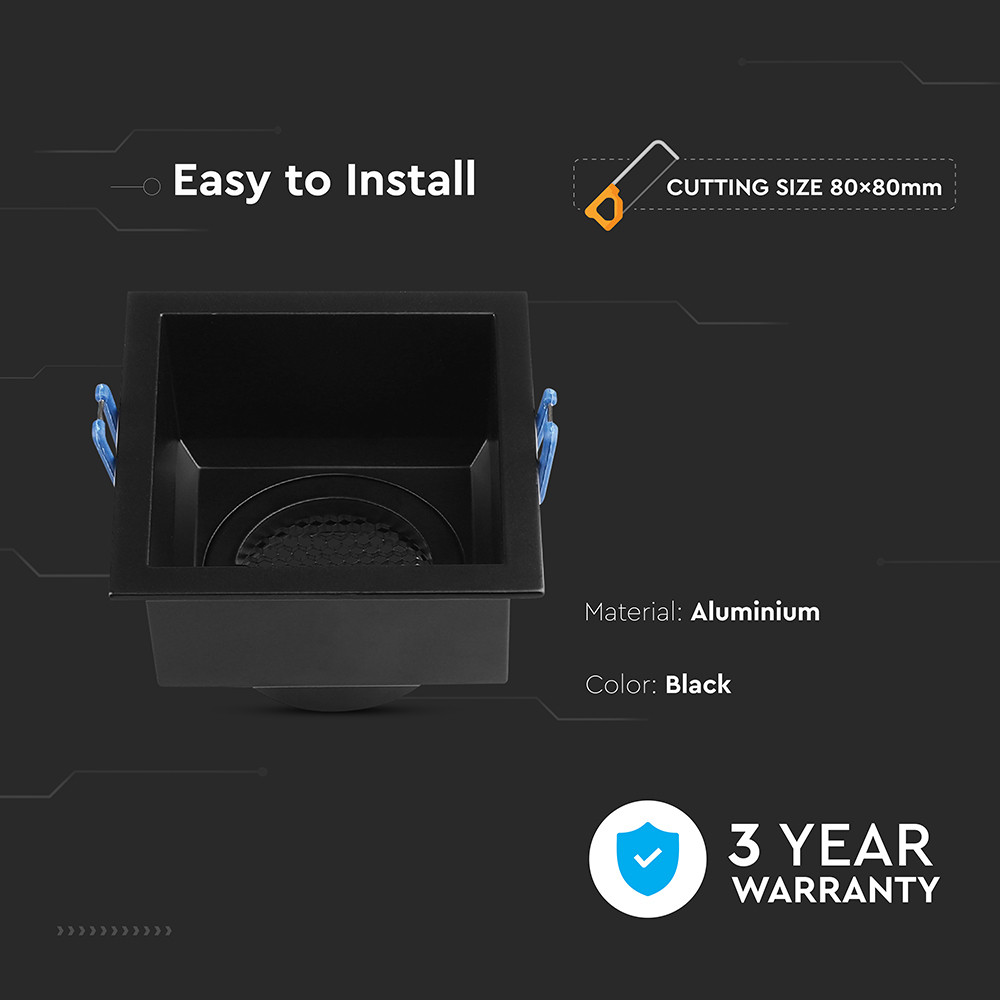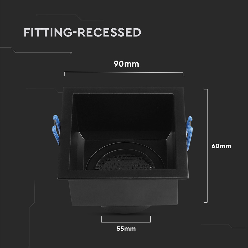 LED spotlámpa keret négyzet alakú, méhsejt diffúzorral, GU10, fekete, V-TAC, 23764