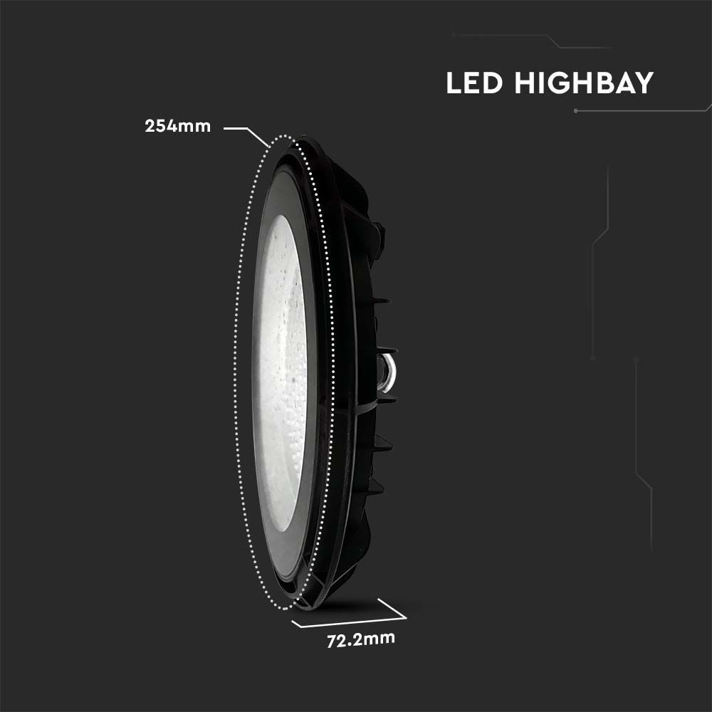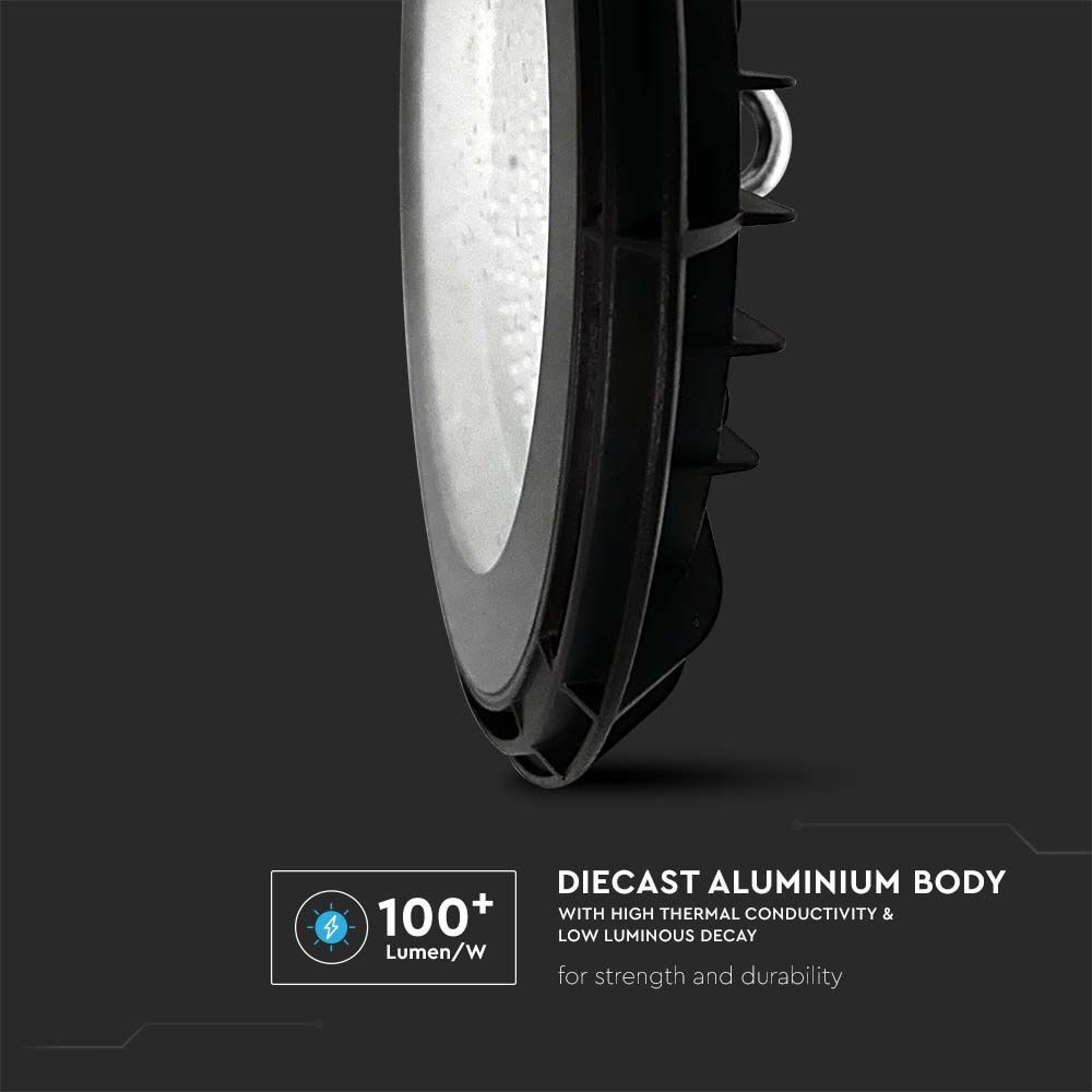 LED csarnokvilágító UFO 110°, 100w, 4000K, természetes fehér, 10000lm, fekete, CRI>80, IP65, V-TAC, 10202