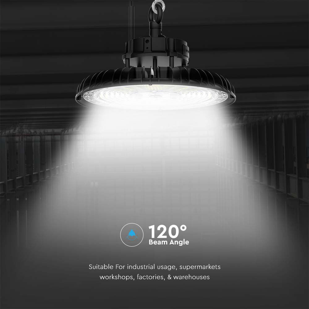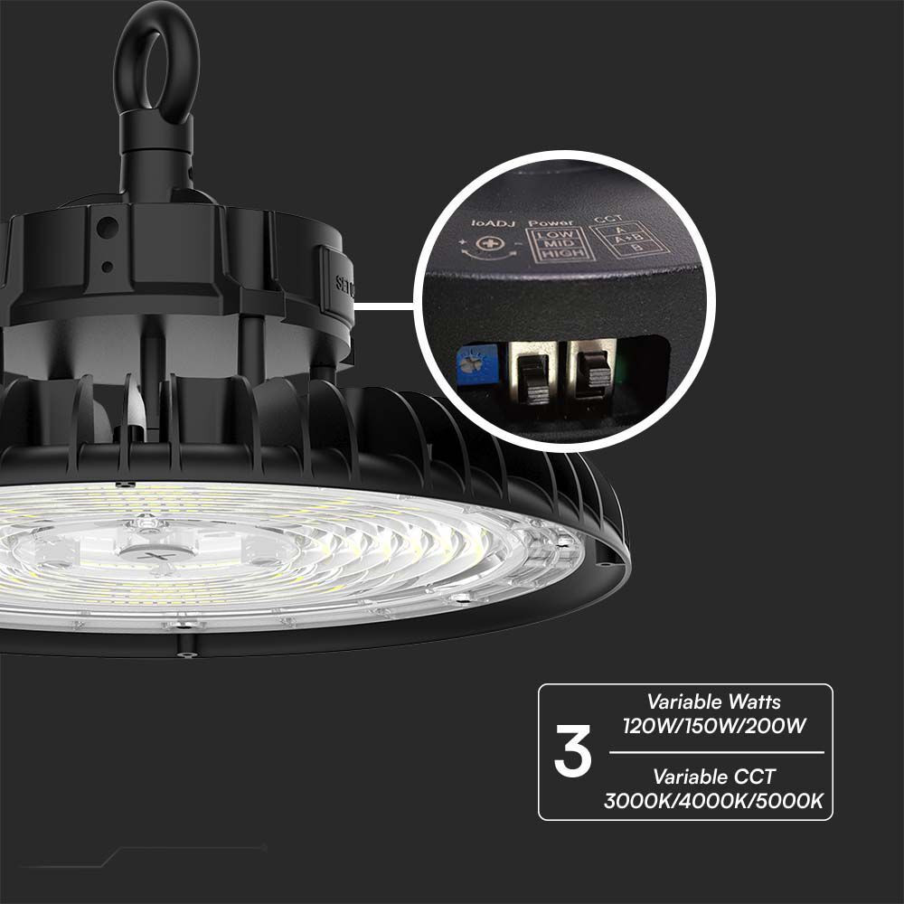 LED csarnokvilágító UFO 120°, 200w, CCT, 27000lm, fekete, CRI>80, IP65, V-TAC, 10467