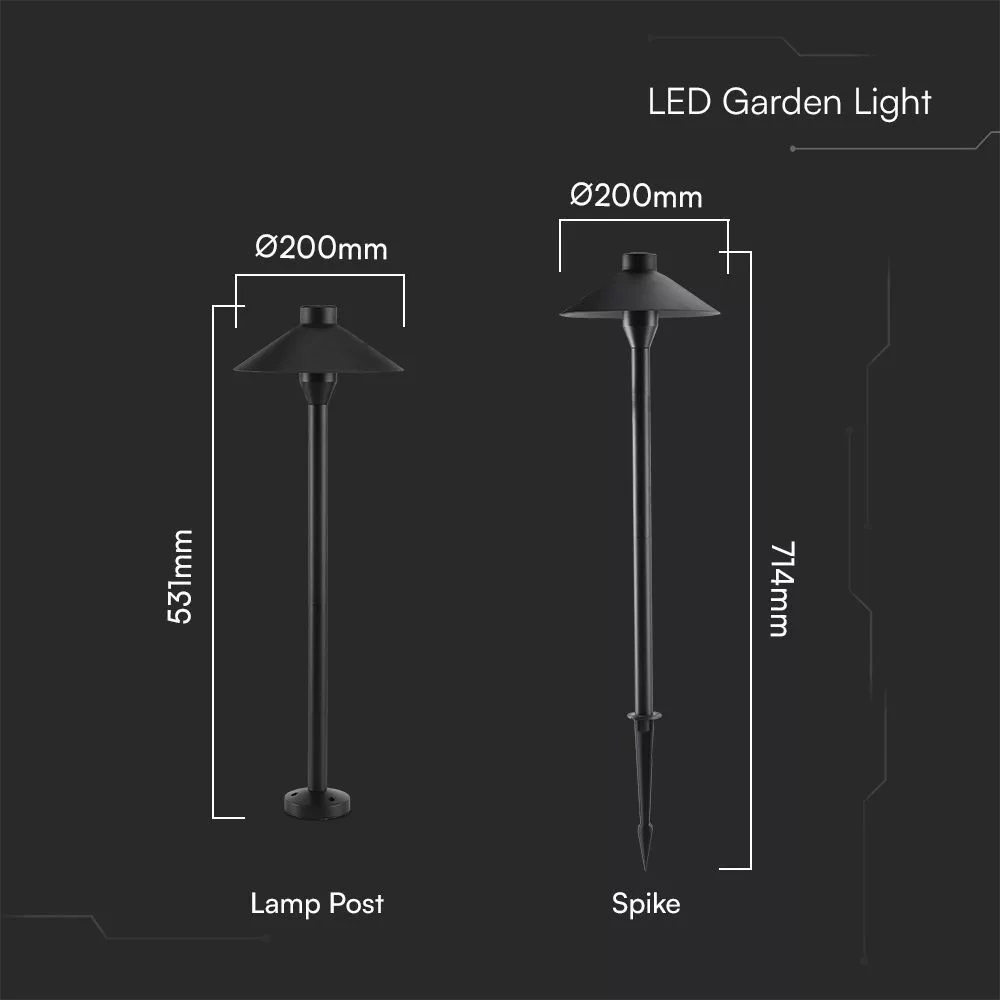 Kültéri leszúrható állólámpa, 7w, 3000K, meleg fehér, 600lm, 50°, fekete, CRI>80, IP65, V-TAC, 2120316