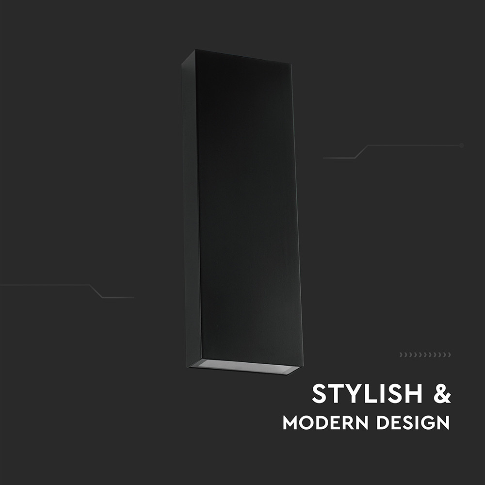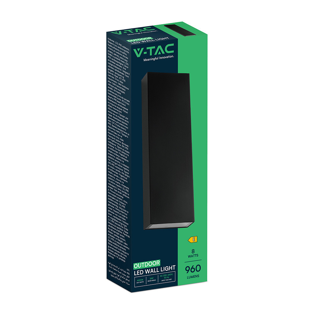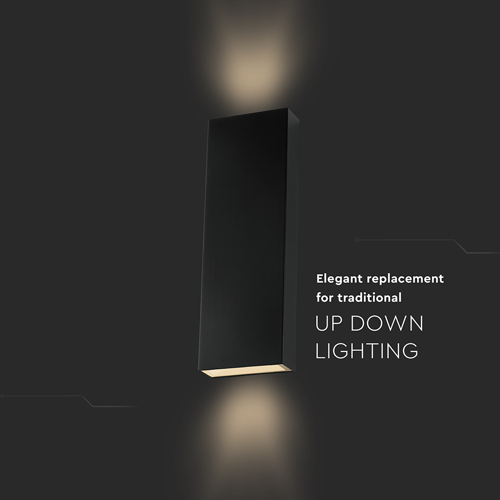LED fali lámpa kétirányú téglalap alakú IP65, 8w, 4000K, természetes fehér, 1120lm, 295°, fekete, CRI>80, V-TAC, 23760