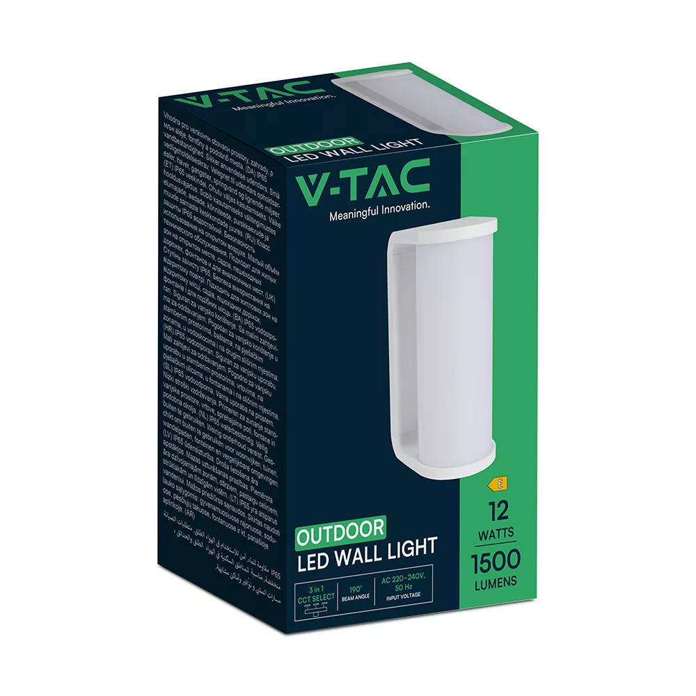 Kültéri LED fali lámpa modern, 12w, CCT, 1760lm, 190°, fehér, CRI>80, IP65, V-TAC, 23759