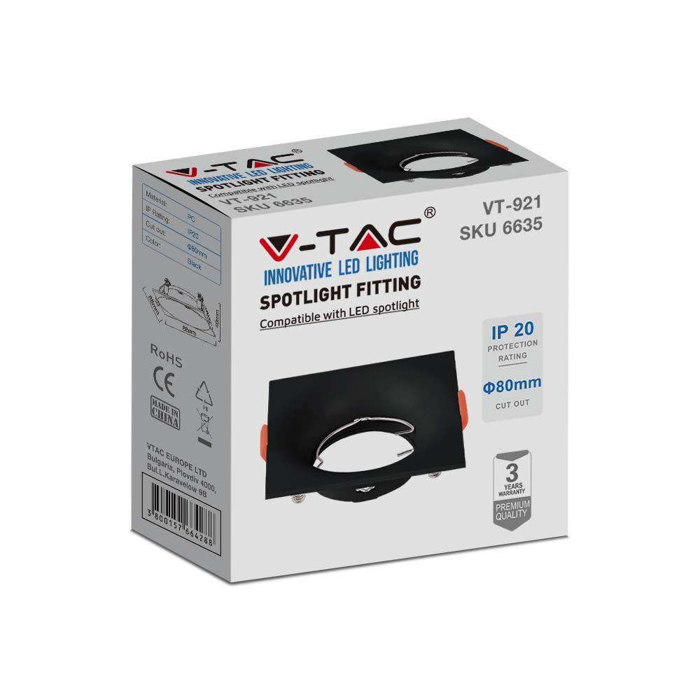LED spotlámpa keret négyzet alakú, GU10, fekete, V-TAC, 6635