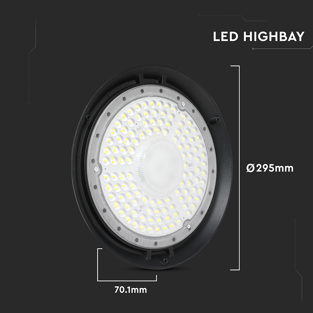 LED csarnokvilágító UFO 90°, 150w, 4000K, természetes fehér, 20250lm, fekete, CRI>70, IP65, V-TAC, 217810