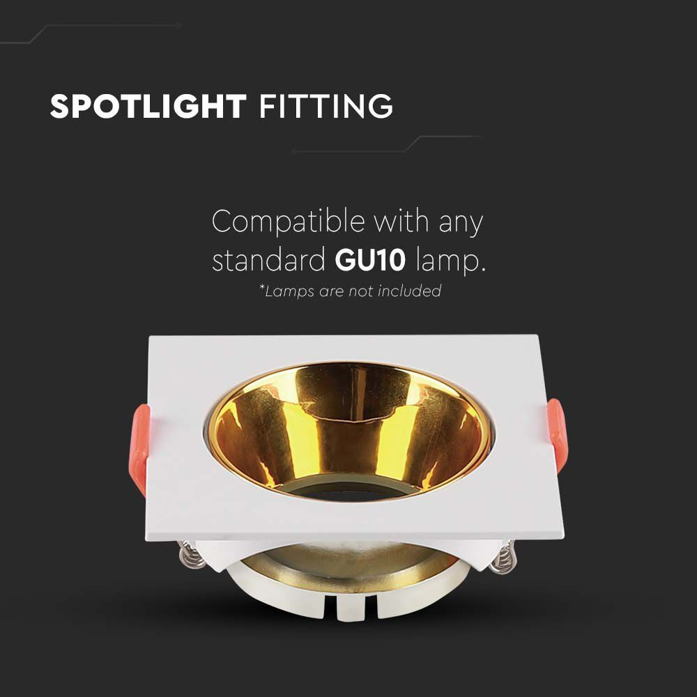 LED spotlámpa keret négyzet alakú, GU10, fehér, arany, V-TAC, 6654