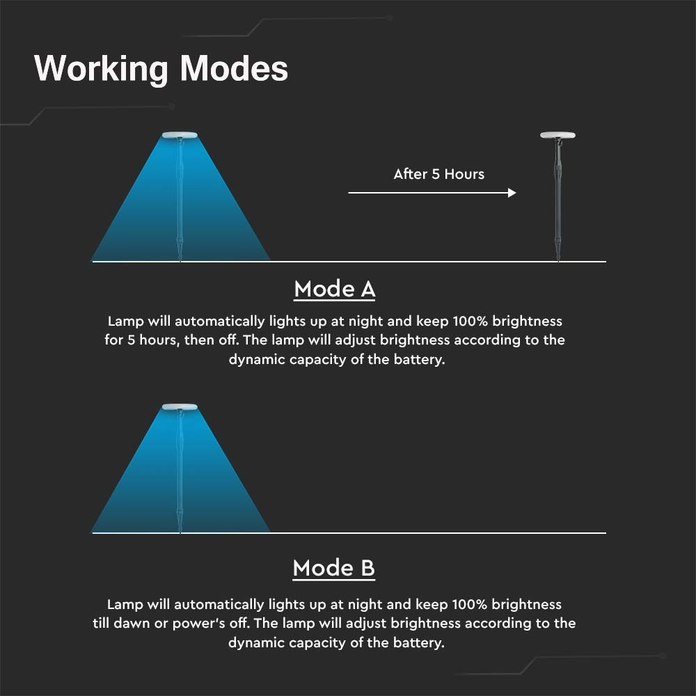 Leszúrható Szolár LED lámpa állítható magassággal, 3w, 3000K, meleg fehér, 260lm, 360°, fehér, fekete, CRI>80, IP65, 2 db/csomag, V-TAC, 6668