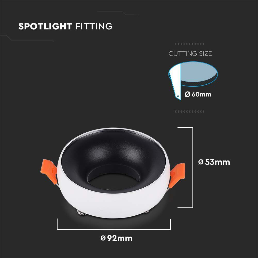 LED spotlámpa keret kerek, GU10, fehér, fekete belsővel, V-TAC, 6694