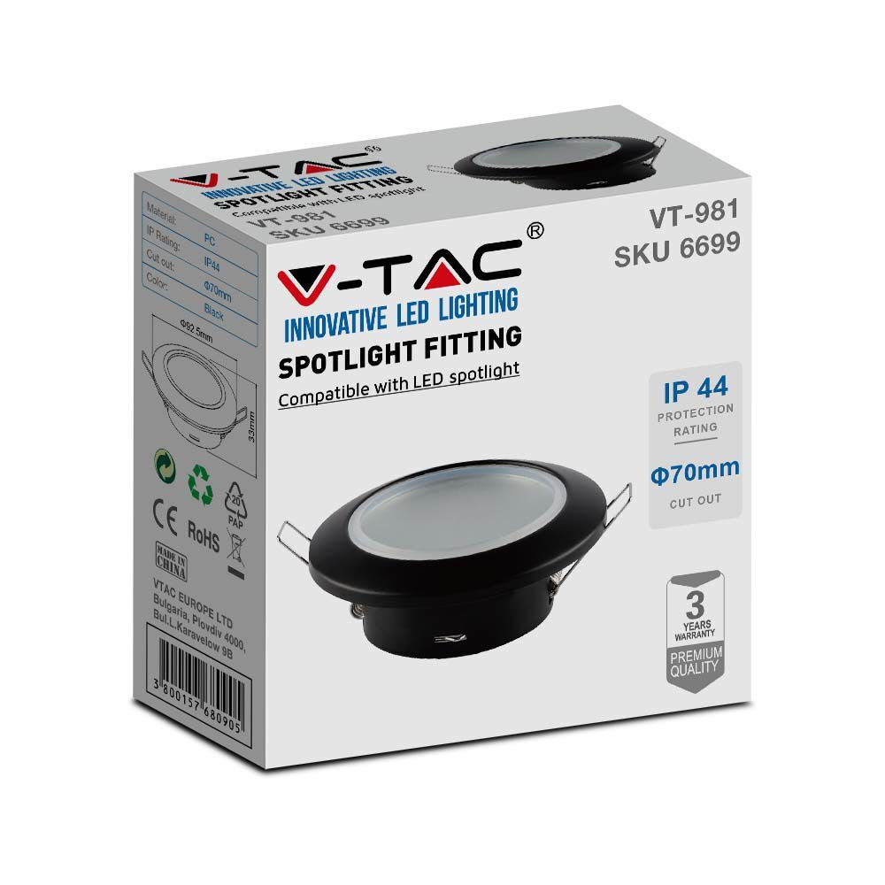 LED spotlámpa keret kerek, GU10, fekete, IP44, V-TAC, 6699