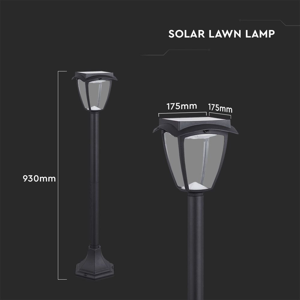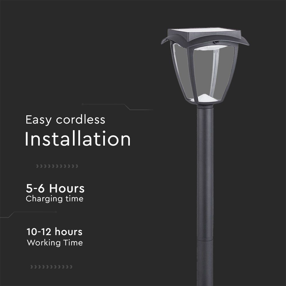 Szolár LED kerti állólámpa, 2w, 3000K, meleg fehér, 110lm, 170°, matt fekete, IP65, V-TAC, 2894