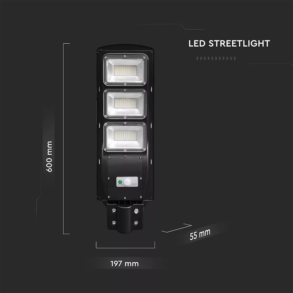 Bemutatjuk a VT-ST180 LED műanyag napelemes utcai lámpát, egy környezetbarát világítási megoldást, amelyet a hatékonyság és a tartósság jegyében terveztek. Elegáns fekete testével ez a napelemes utcai lámpa erős, 6000 K fehér fényt bocsát ki, akár 1200 lumen fényerővel. Széles, 120°-os sugárzási szöggel rendelkezik, amely tökéletes a nagy területek megvilágítására. Az elemek ellenállóvá tételére tervezett VT-ST180 IP65 besorolással rendelkezik, így víz- és porálló. A lámpa -20 és +60°C közötti hőmérsékleten működik, így különböző éghajlati viszonyokhoz is alkalmas. Ez a modell 180 kiváló minőségű SMD LED chipet tartalmaz, így hosszú élettartamot és energiatakarékos funkciókat kínál, amelyek egyenértékűek egy hagyományos 50 W-os lámpával. LiFePO4 akkumulátorral (3,2 V, 10 000 mAh) van felszerelve, amely 4-6 óra napfény alatt feltöltődik, így 12-15 óra közötti megbízható működési időt biztosít. A telepítés egyszerű, a lámpa nem szabályozható fényerővel és közvetlen telepítésre alkalmas csatlakozóval rendelkezik. A 2 év garanciával rendelkező VT-ST180 nemcsak hatékony, hanem tartós választás is kültéri terek, ösvények és kocsifelhajtók díszítésére.