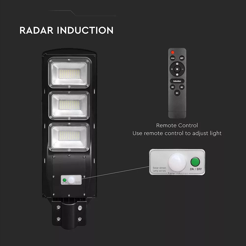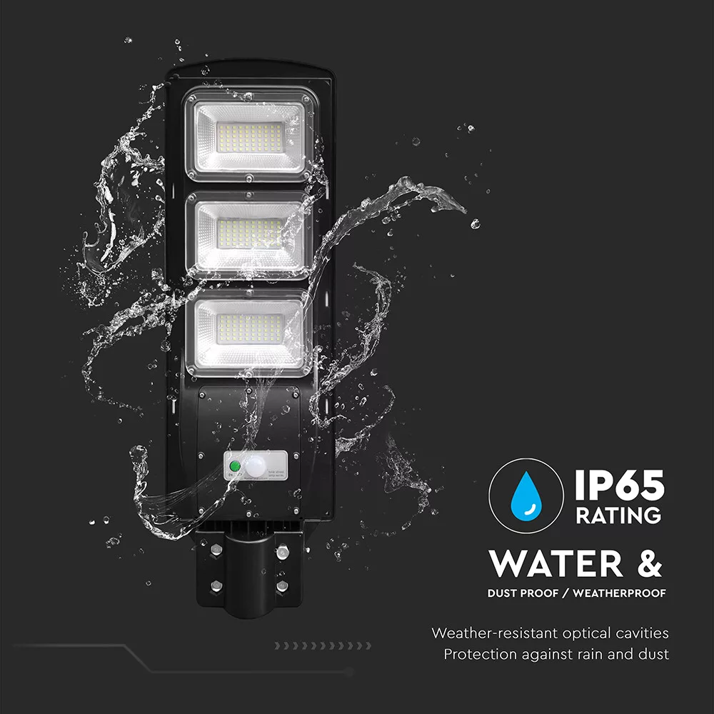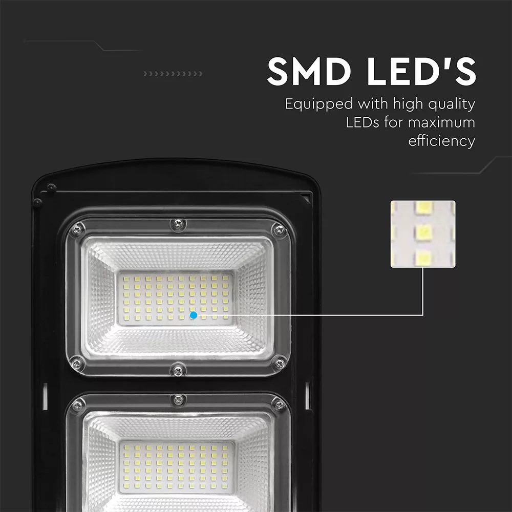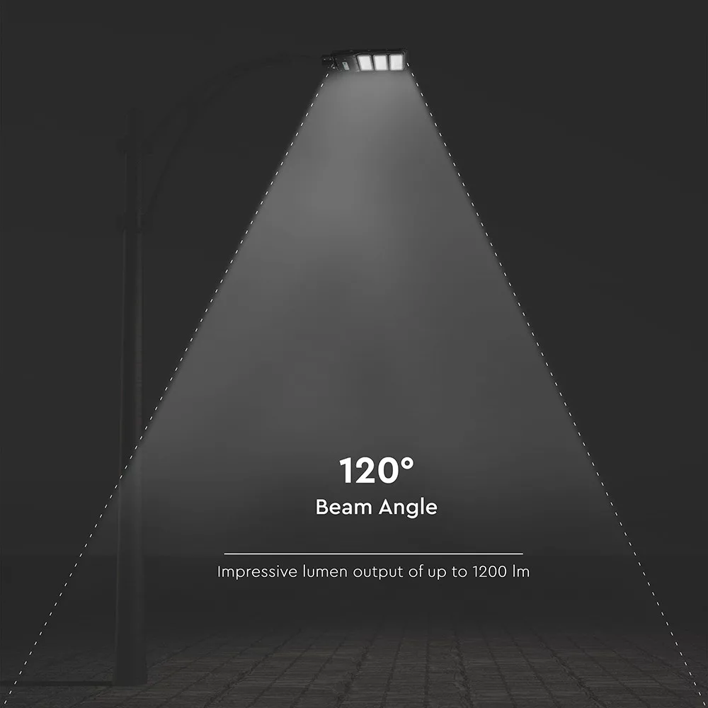 Szolár LED utcai lámpa, 6000K, hideg fehér, 1200lm, 120°, fekete, IP65, V-TAC, 95534