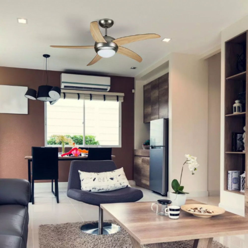 Ventilátoros LED lámpatest , mennyezeti , 5 lapáttal , 2 x E27 foglalattal , távirányítóval