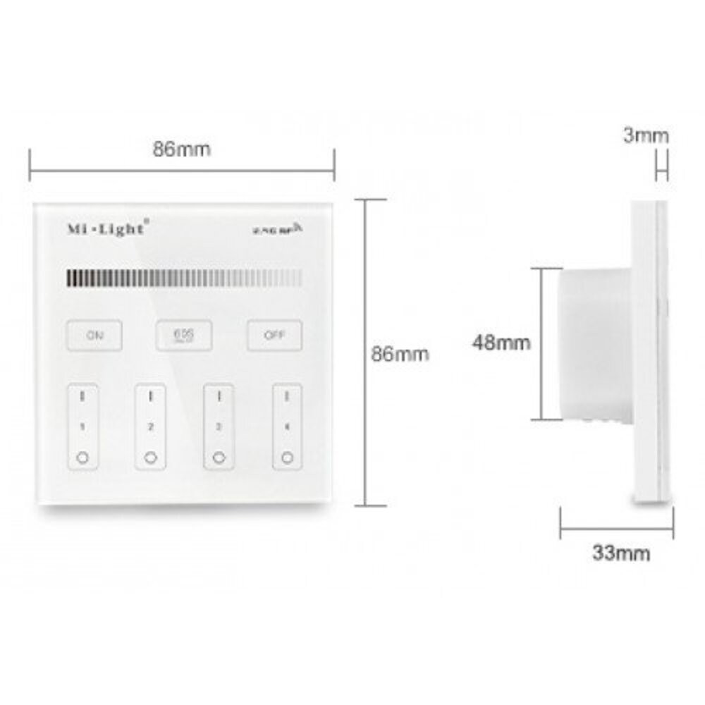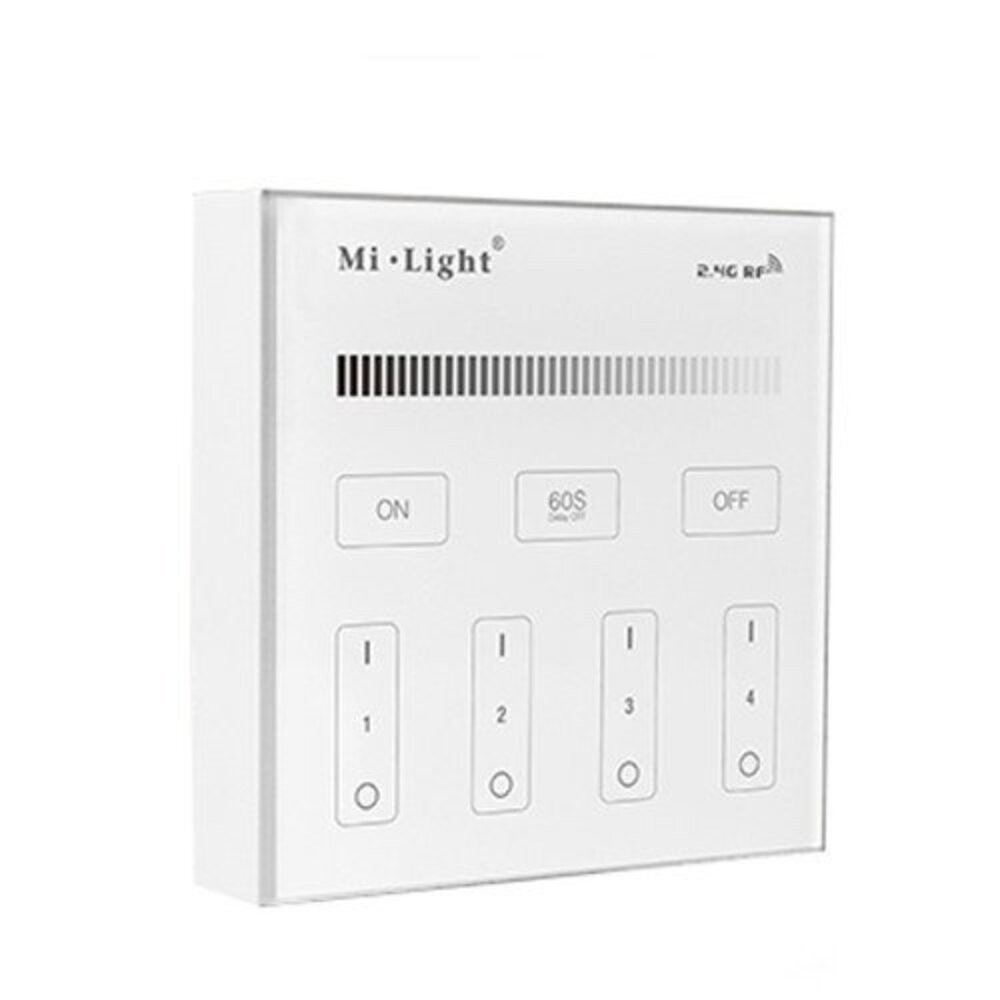 Vezeték nélküli , hálózati, fali , érintős , vezérlőpult,  egyszínű fényforráshoz, 4 zónás , Miboxer (Mi-Light) , T1