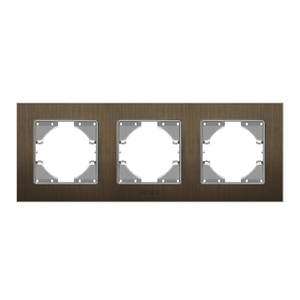 Videx Binera csokoládé színű alumínium hármas vízszintes keret (6/48), Pozíció: Vízszintes Ülőhelyek száma: 3 helyen Keret anyaga: Alumínium Mennyiség a belső dobozban: 6 darab Szín: Csokoládé alumínium Telepítés típusa: Beépített Jótállási idő: 3 év Méretek: 228 x 86 x 6,5 mm Dobozonkénti mennyiség: 48 darab , ledmasterb2b