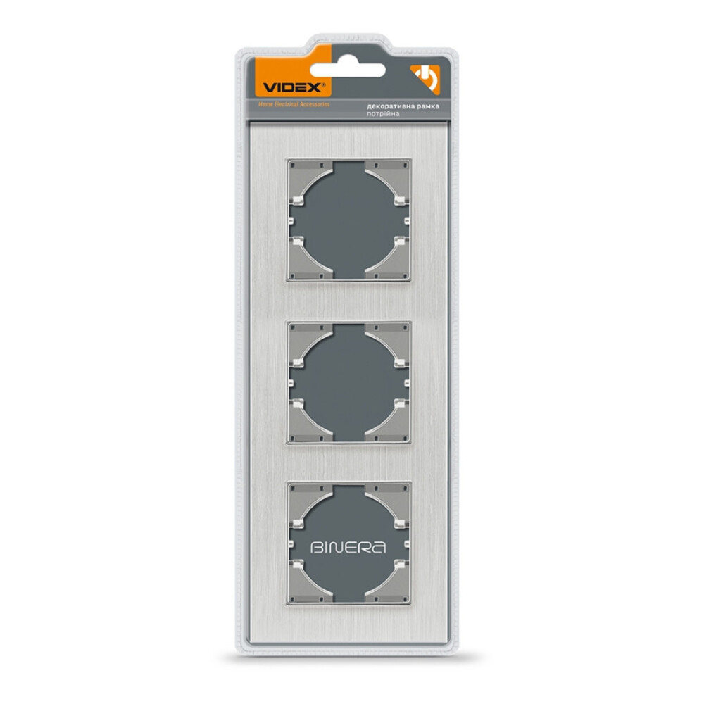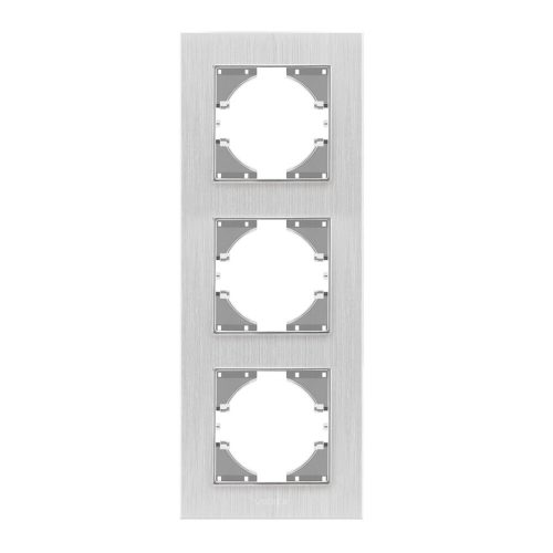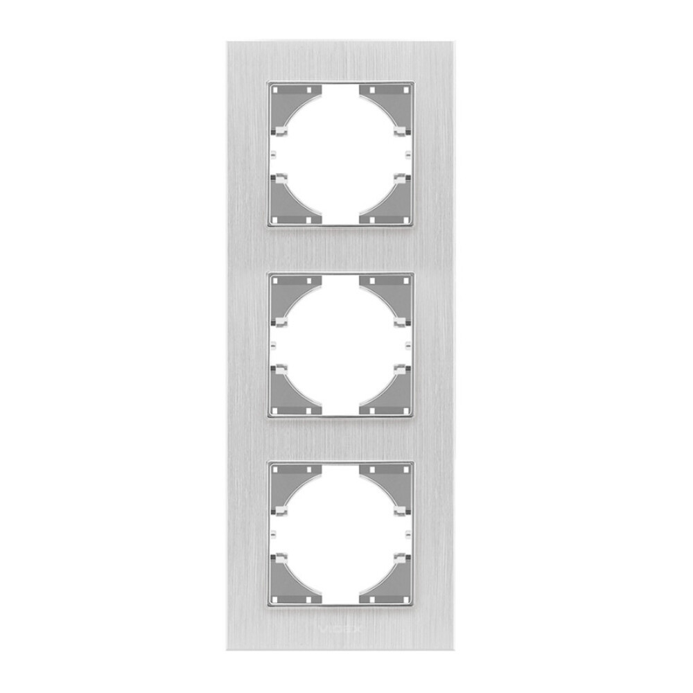 Videx Binera ezüst színű alumínium hármas függőleges keret (6/48), Pozíció: Függőleges Foglalatok száma: 3 Keret anyaga: Alumínium Mennyiség a belső dobozban: 6 darab Szín: Ezüst alumínium Telepítés típusa: Beépített Jótállási idő: 3 év Méretek: 228 x 86 x 6,5 mm Dobozonkénti mennyiség: 48 darab , ledmasterb2b