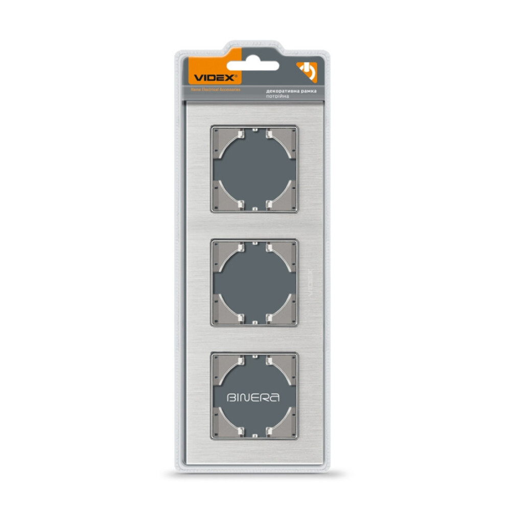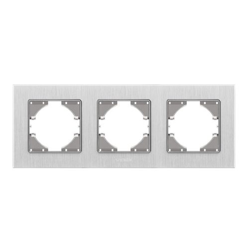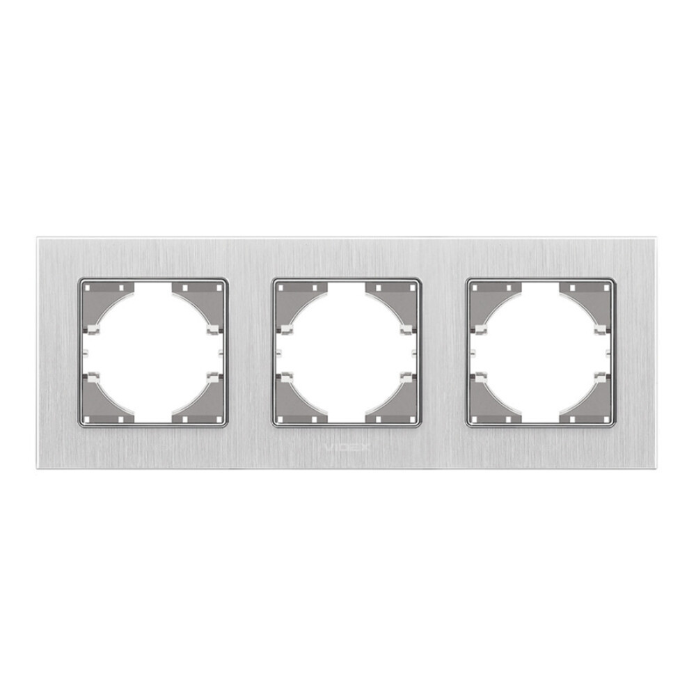 Videx Binera ezüst színű alumínium vízszintes függőleges keret (6/48), Pozíció: Vízszintes Foglalatok száma: 3 Keret anyaga: Alumínium Mennyiség a belső dobozban: 6 darab Szín: Ezüst alumínium Telepítés típusa: Beépített Jótállási idő: 3 év Méretek: 228 x 86 x 6,5 mm Dobozonkénti mennyiség: 48 darab , ledmasterb2b
