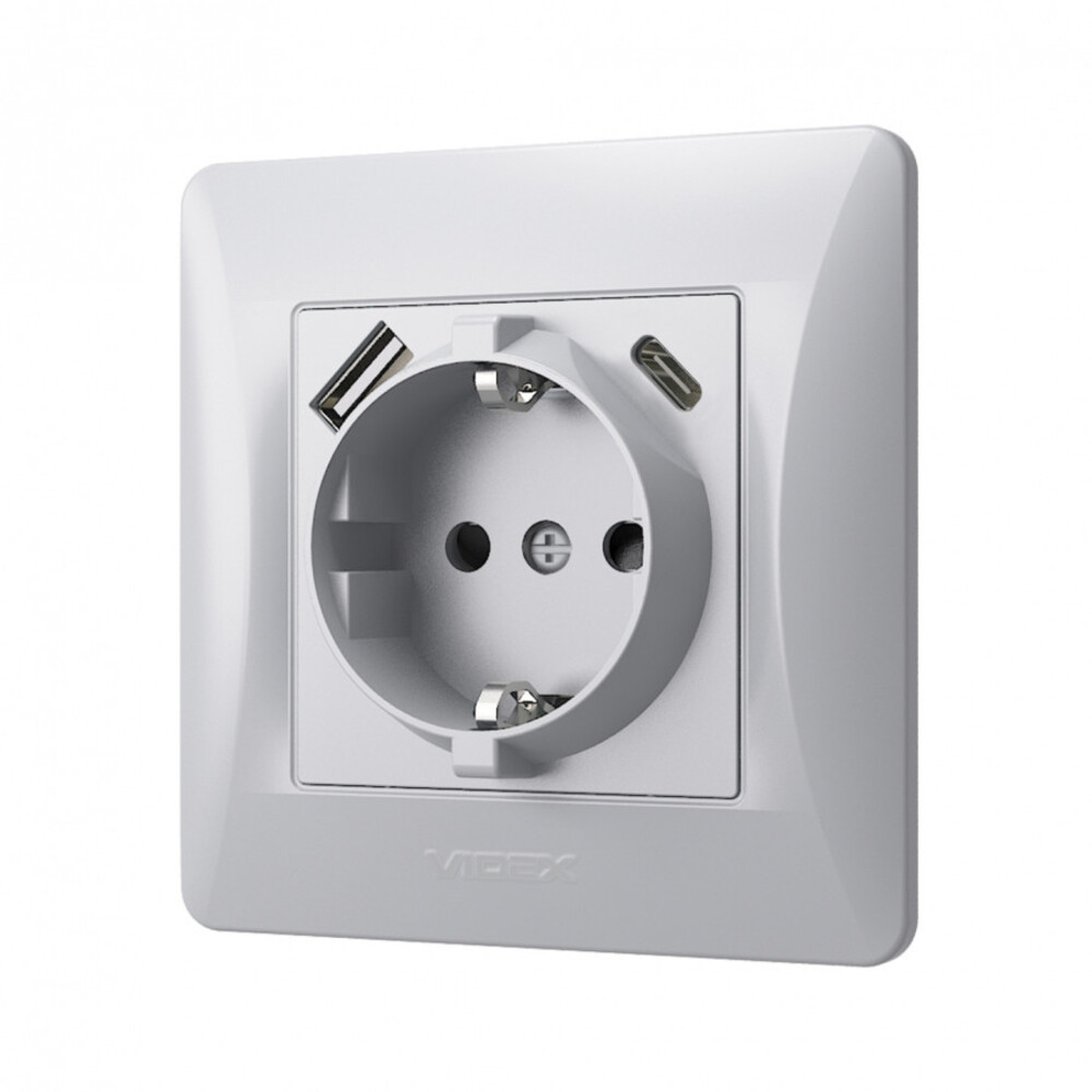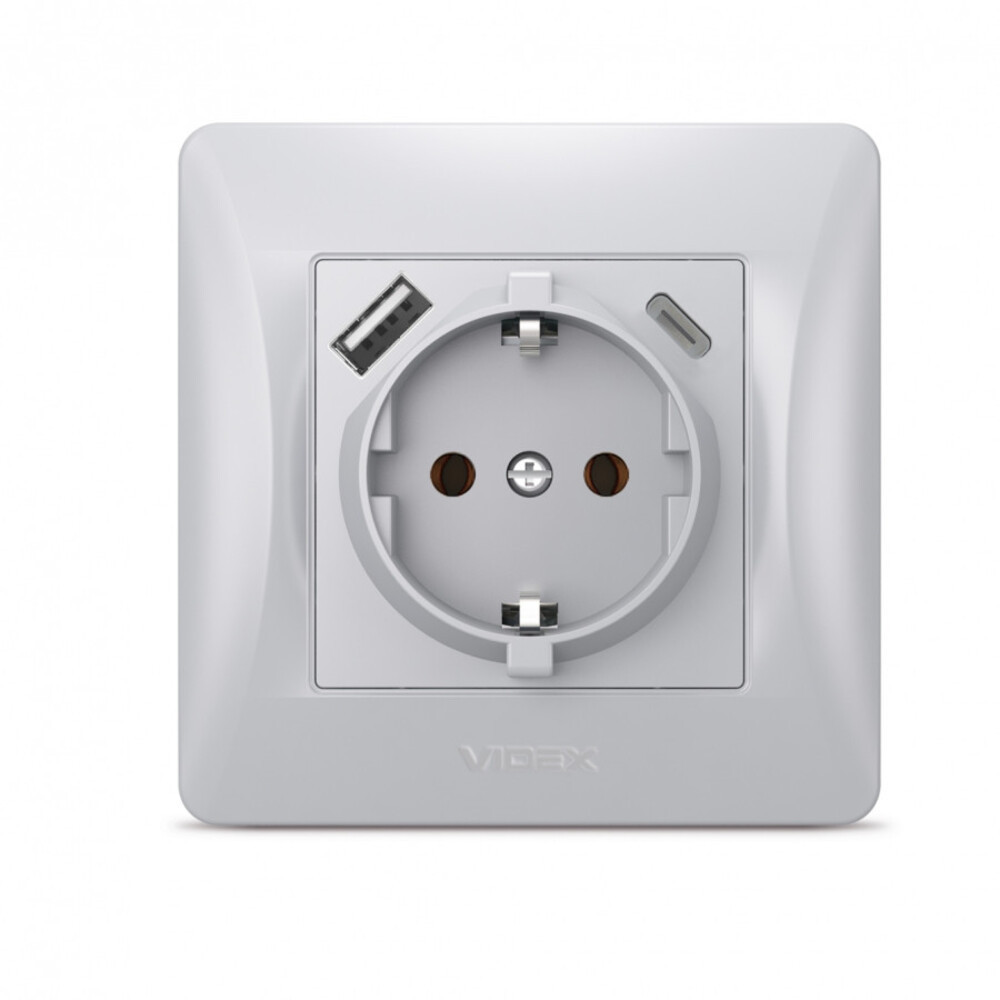 Videx Binera ezüst színű süllyesztett földelt csatlakozó aljzat + 1-1 db USB csatlakozóval USB-C csatlakozóval (20/120)