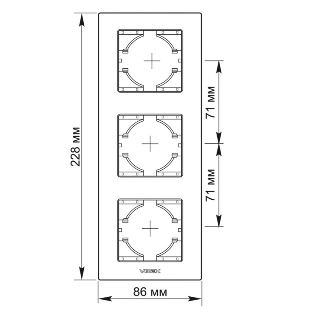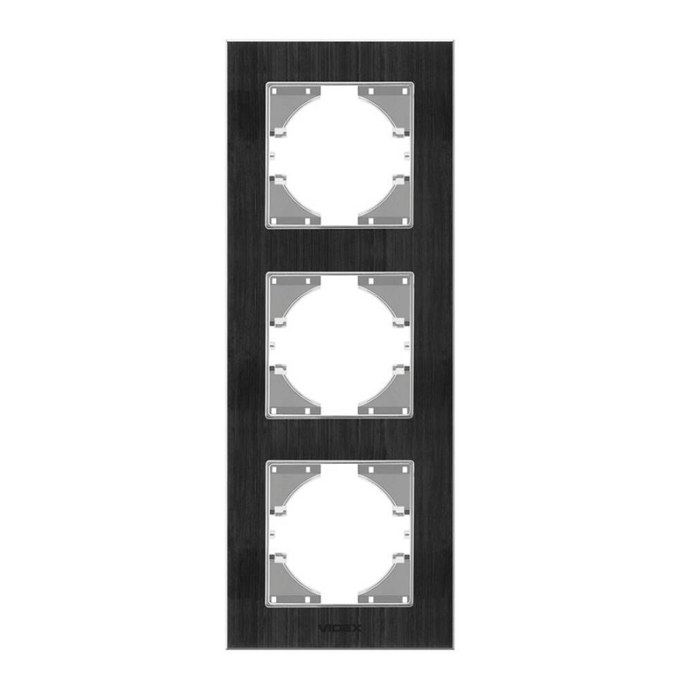 Videx Binera fekete színű alumínium hármas függőleges keret (6/48), Pozíció: Függőleges Foglalatok száma: 3 Keret anyaga: Alumínium Mennyiség a belső dobozban: 6 darab Szín: Ezüst alumínium Telepítés típusa: Beépített Jótállási idő: 3 év Méretek: 228 x 86 x 6,5 mm Dobozonkénti mennyiség: 48 darab , ledmasterb2b