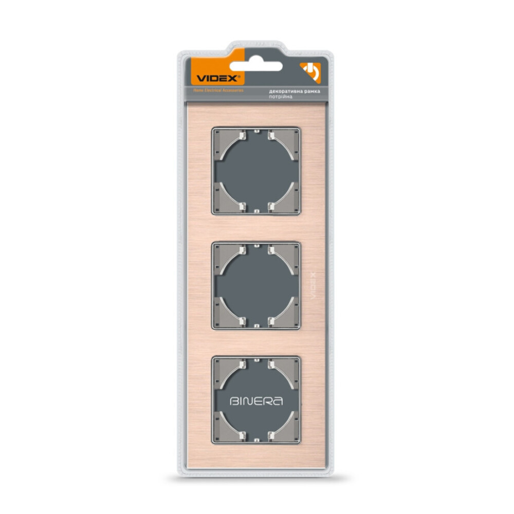 Videx Binera rosegold színű alumínium hármas vízszintes keret (6/48), Pozíció: Vízszintes Foglalatok száma: 3 Keret anyaga: Alumínium Mennyiség a belső dobozban: 6 darab Szín: Rosegold Telepítés típusa: Beépített Jótállási idő: 3 év Méretek: 228 x 86 x 6,5 mm Dobozonkénti mennyiség: 48 darab , ledmasterb2b