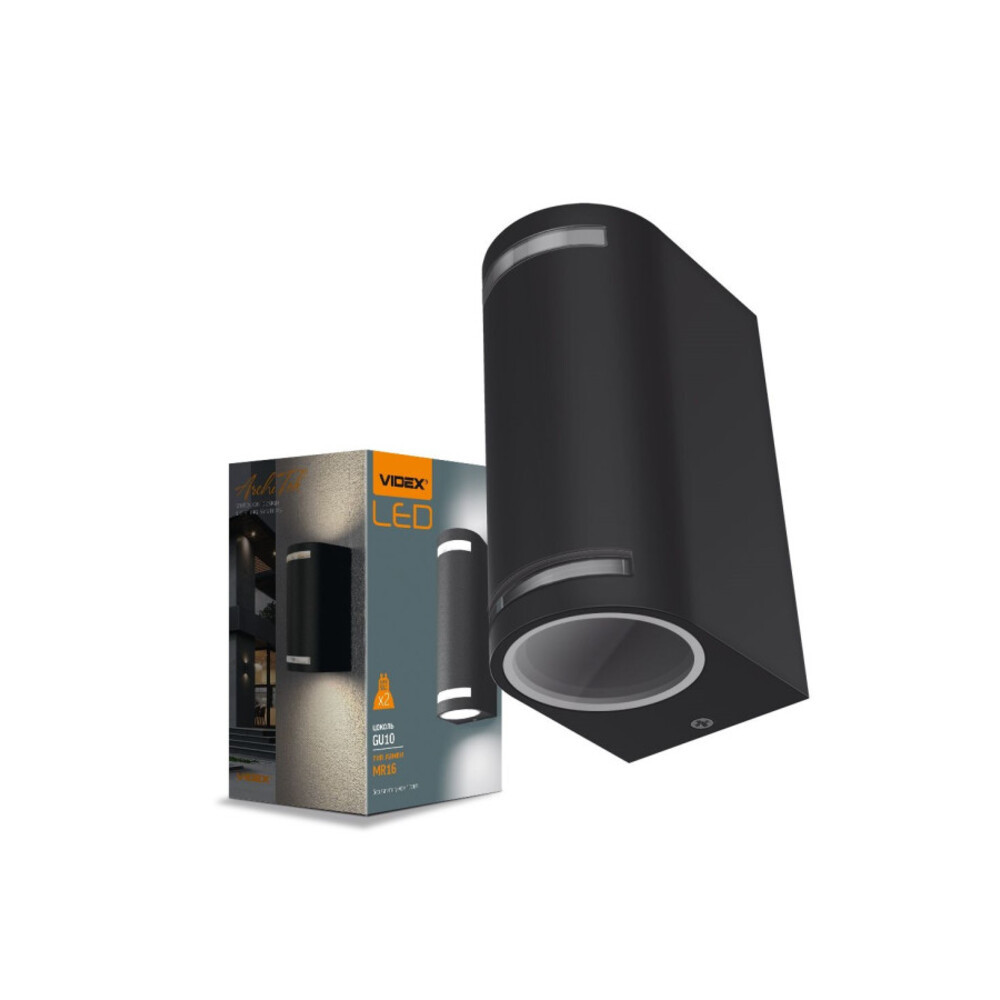 Videx Justin oldalfalra helyezhető fekete IP54-es védettségű kültéri lámpatest 2x GU10-es foglalattal, Videx Justin oldalfalra helyezhető fekete IP54-es védettségű kültéri lámpatest 2x GU10-es foglalattal, ledmasterb2b